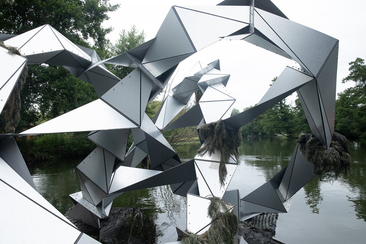Sculpture flottante, 4,5 x 3,5 x 4,5 m environ.