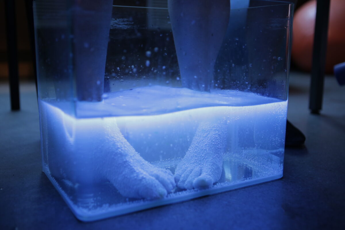 L’aquagymologie est une nouvelle discipline scientifique, créée par Clélia Barbut et Charlotte Hubert. Elle vise à faire un état des recherches sur l’aquagym, car cette pratique est très mal connue de la littérature académique, mais aussi à produire une science qui n’existe pas. Partant de cette incongruité, il s’agit de créer du savoir autant que de le mettre en scène.