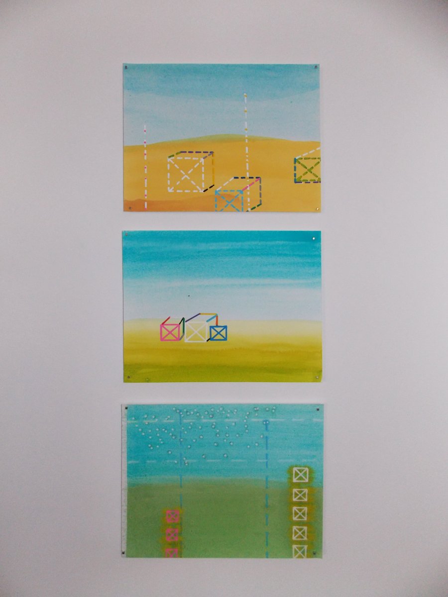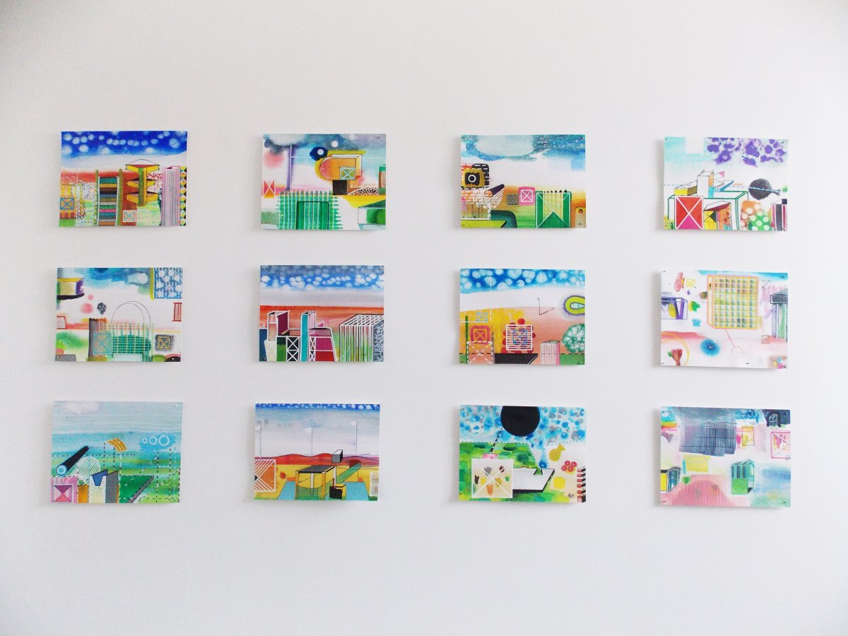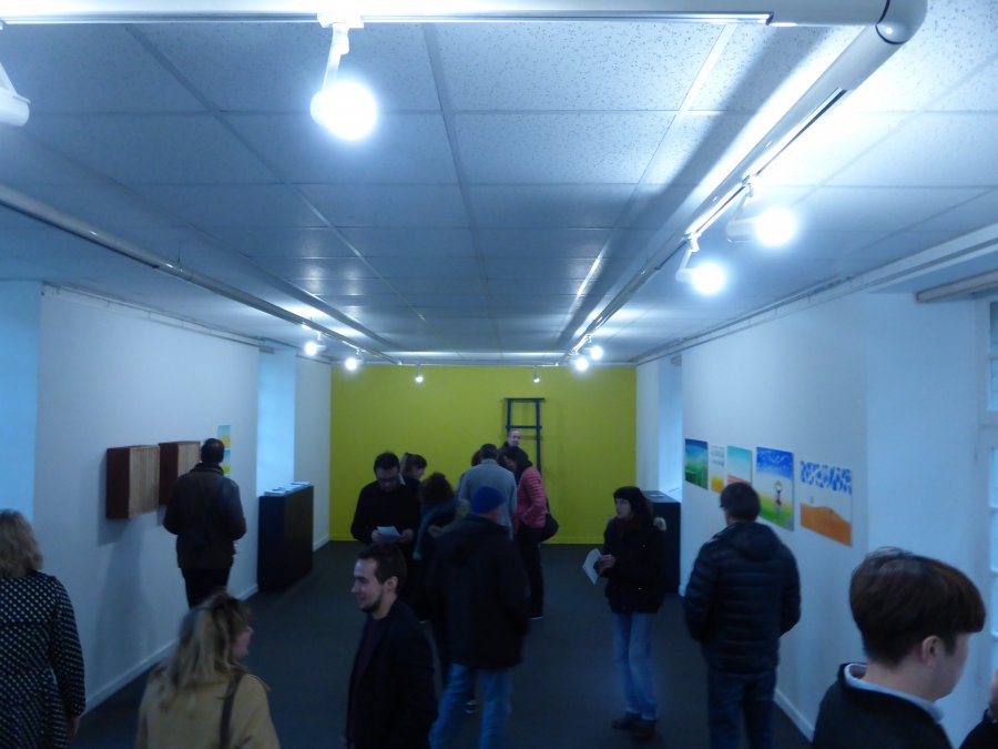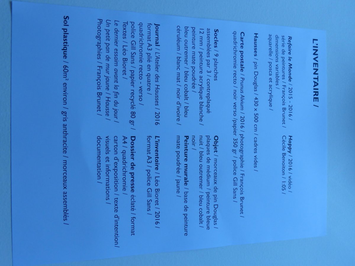Le dispositif d’écriture mis en place, interroge la forme de l’exposition et le rapport aux oeuvres, à travers de nombreux éléments déclinés: carte postale, édition, feuille de salle, texte d’intention, notices d’oeuvres, supports, socle, etc.