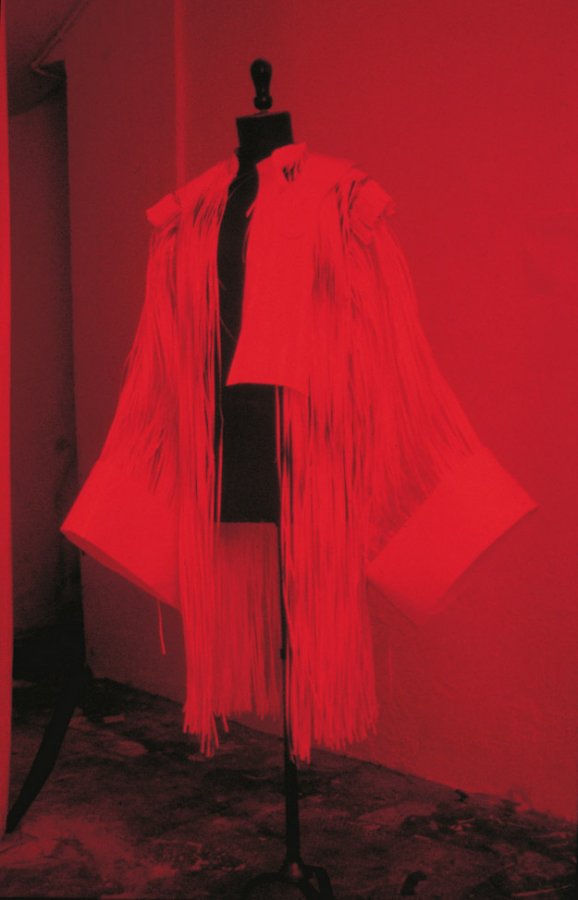 1Le Perméable (1995) est un vêtement réalisé en papier photosensible non impressionné et destiné à ne pas être impressionné. Conçu en lumière rouge inactinique, il ne peut être vu que dans le contexte de cette lumière, à l’abri de toute autre éclairage. Par extension, tout vêtement conçu sur le principe du Perméable porte ce nom générique. Le Perméable est le point de départ du projet des Perméables.