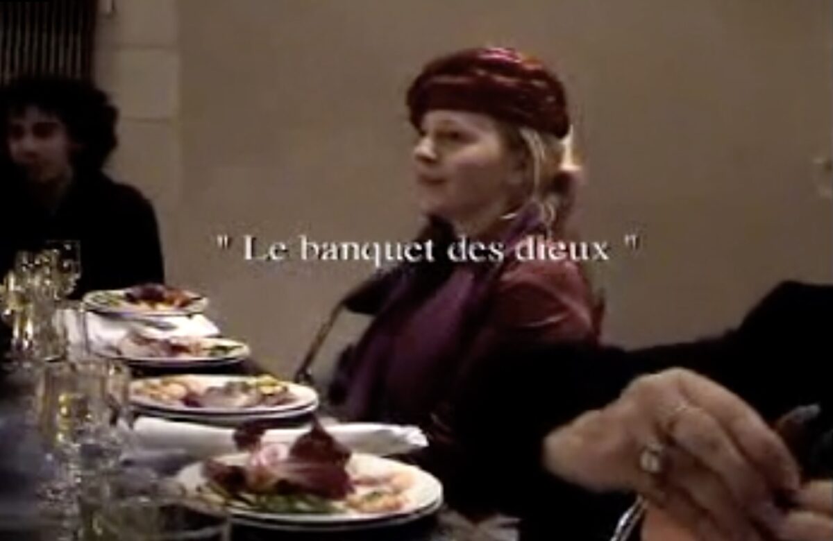 Film 1: J’ai choisi le tableau Le Banquet des Dieux de Hendrick van Balen et Jan Brueghel, dans le musée des Beaux Arts d’Angers et je l’ai fais agrandir et plastifié tel une nappe. Puis, j’ai organisé avec l’artiste Béatrice Dacher, un banquet où ont été convié les différentes personnes liées au projet.