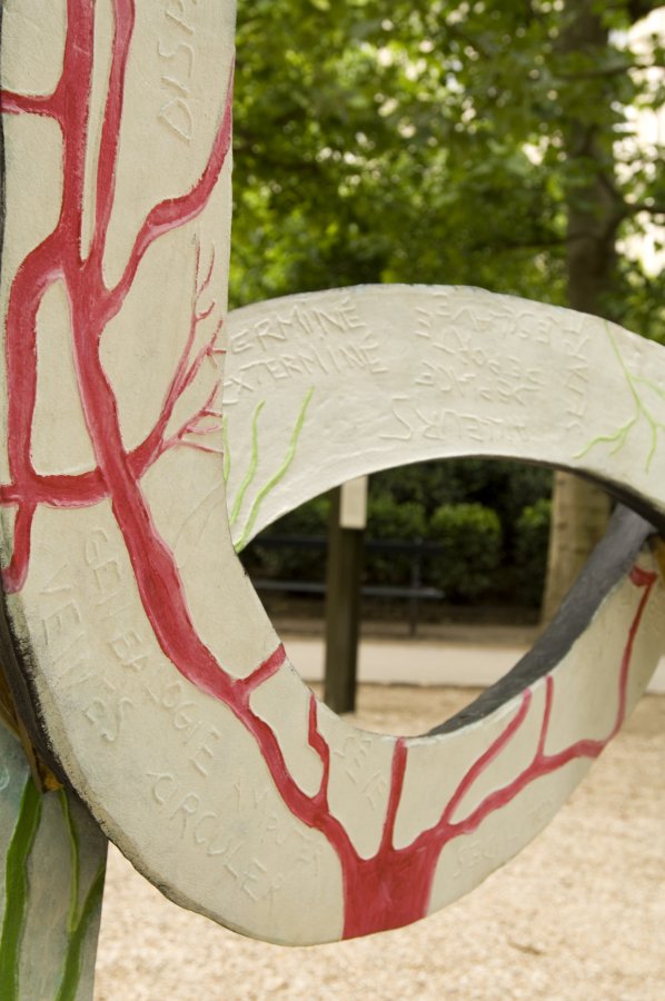 Fabrice Hyber a réalisé « Le cri, l’écrit », une sculpture en bronze polychrome de 3, 70 m de hauteur. L’oeuvre a été réalisée à l’atelier Coubertin, Domaine de Coubertin (Saint-Rémy-les- Chevreuse).
