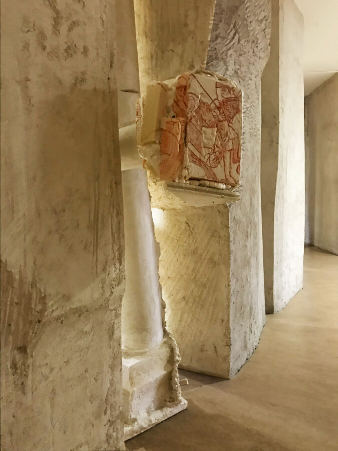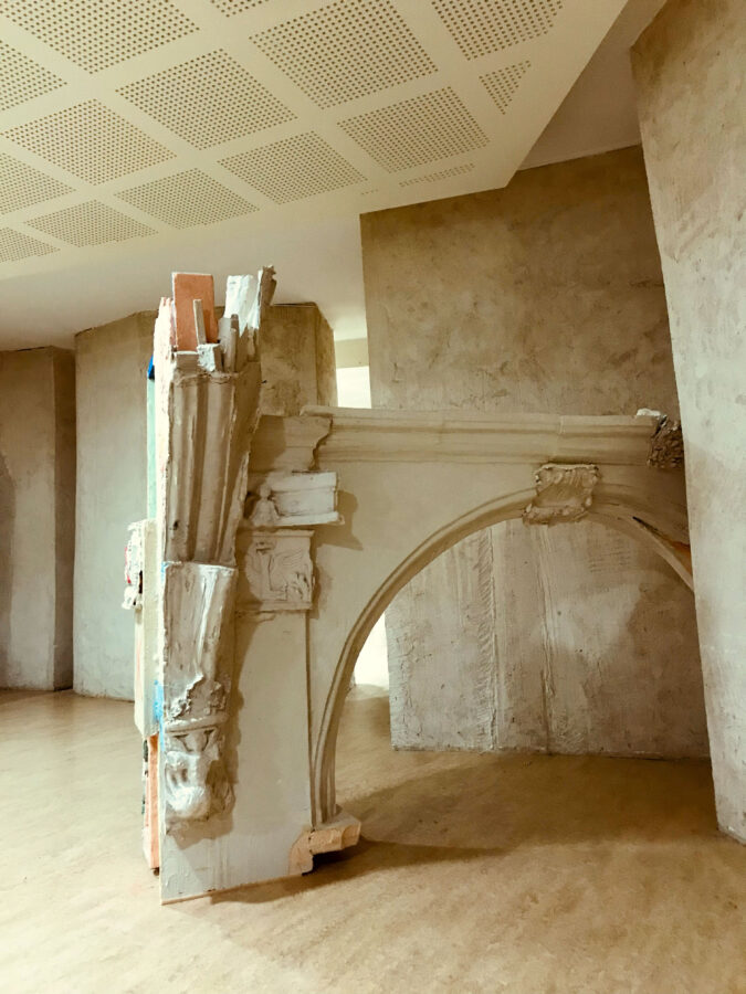 L’installation Le curieux rêve de Renée de Bourbon réunit architecture, sculpture et peinture. Elle cherche à intégrer le processus de production et joue avec les notions de l’original et de la copie, en interrogeant les concepts de la déviation et de l’appropriation. De nombreux fragments architecturaux de Fontevraud sont assemblés dans un collage 3D à l’échelle 1:1.