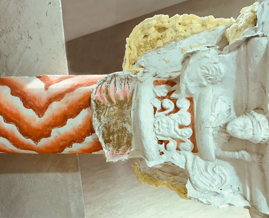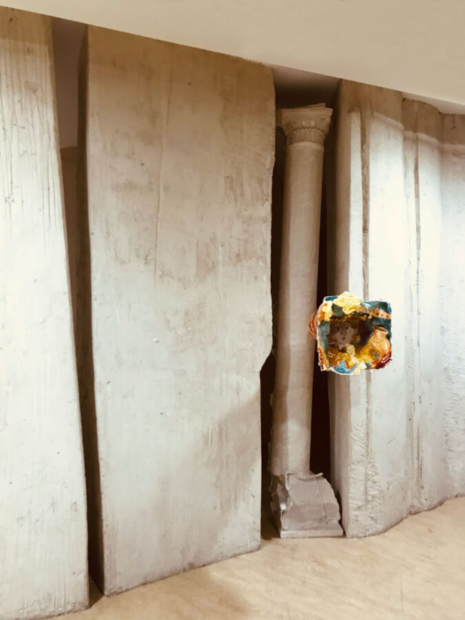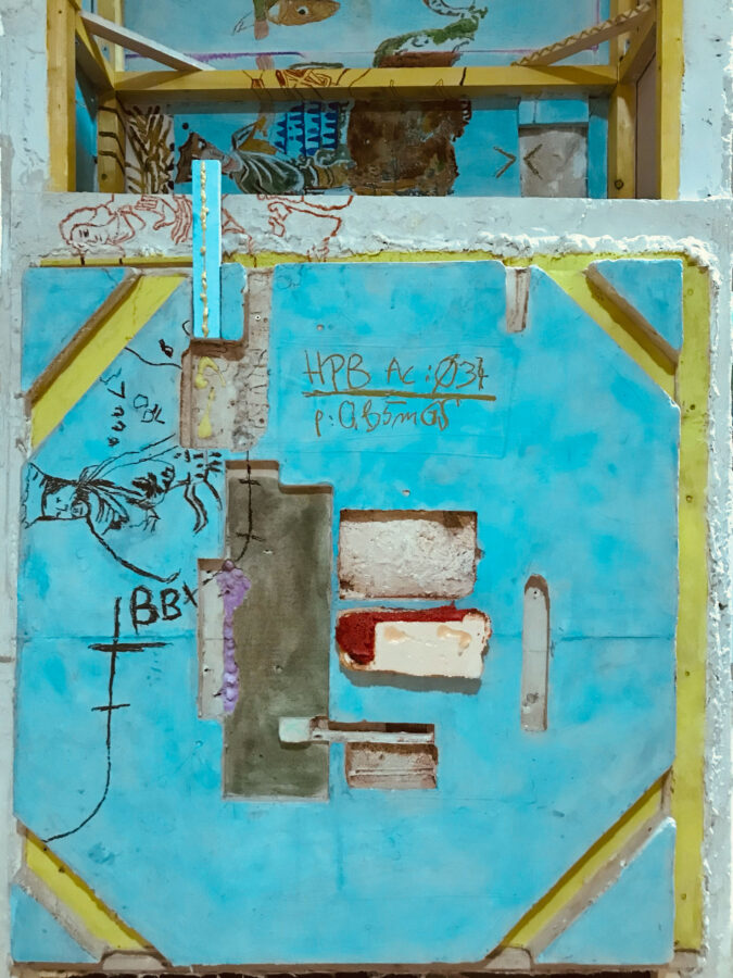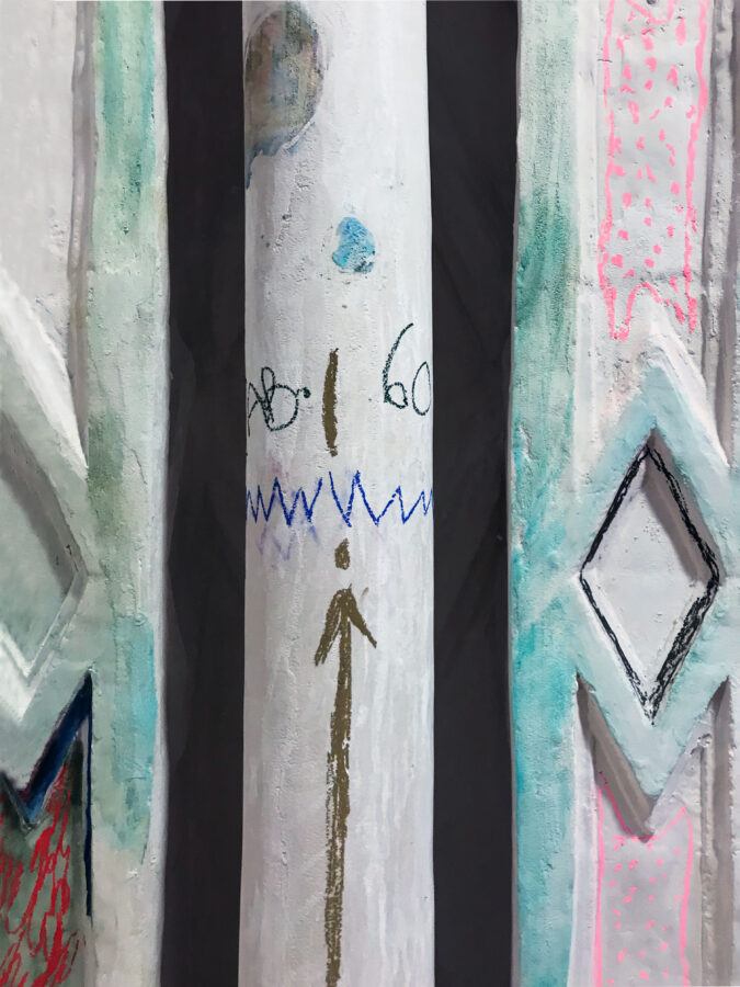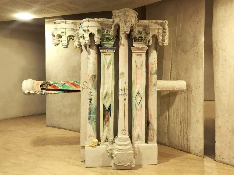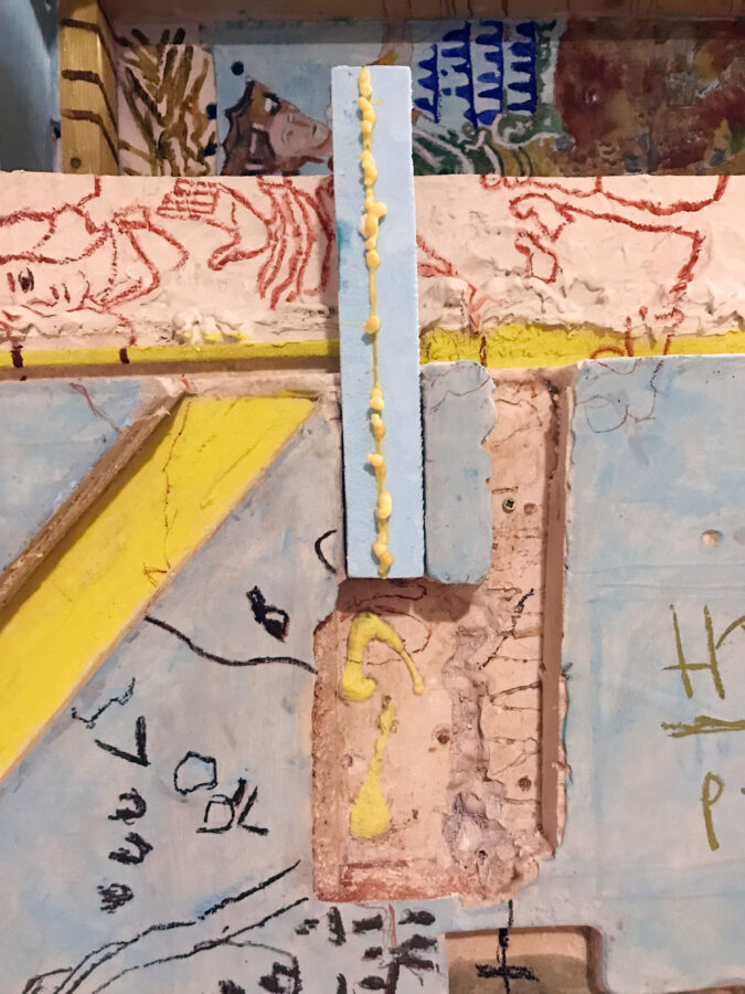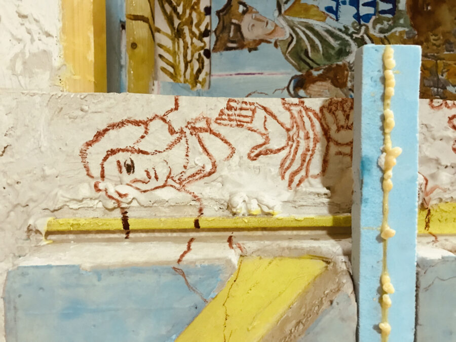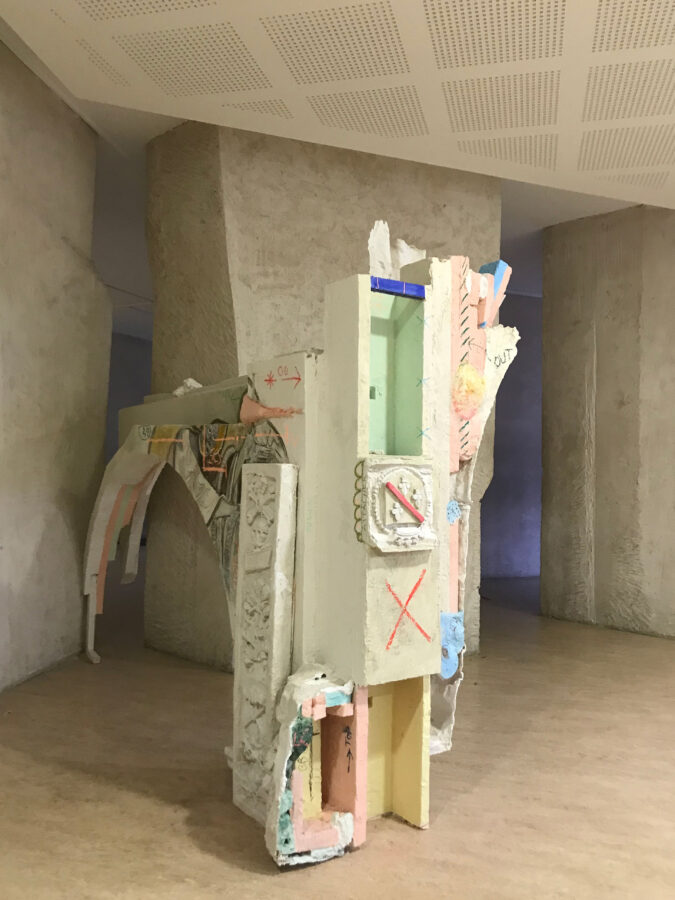 L’oeuvre est fortement influencé par l’histoire de l’art, à la fois intimidant et inspirant et interroge les règles de présentation. Différents canons esthétiques sont juxtaposés dans cette installation pour réunir des styles de différentes époques et de différents domaines. Peintures murales inspirées des fresques médiévales ou des matériaux de bricolage (comme les panneaux extrudés) sont combinées avec des dessins utilitaires et techniques du monde de la construction et restauration.