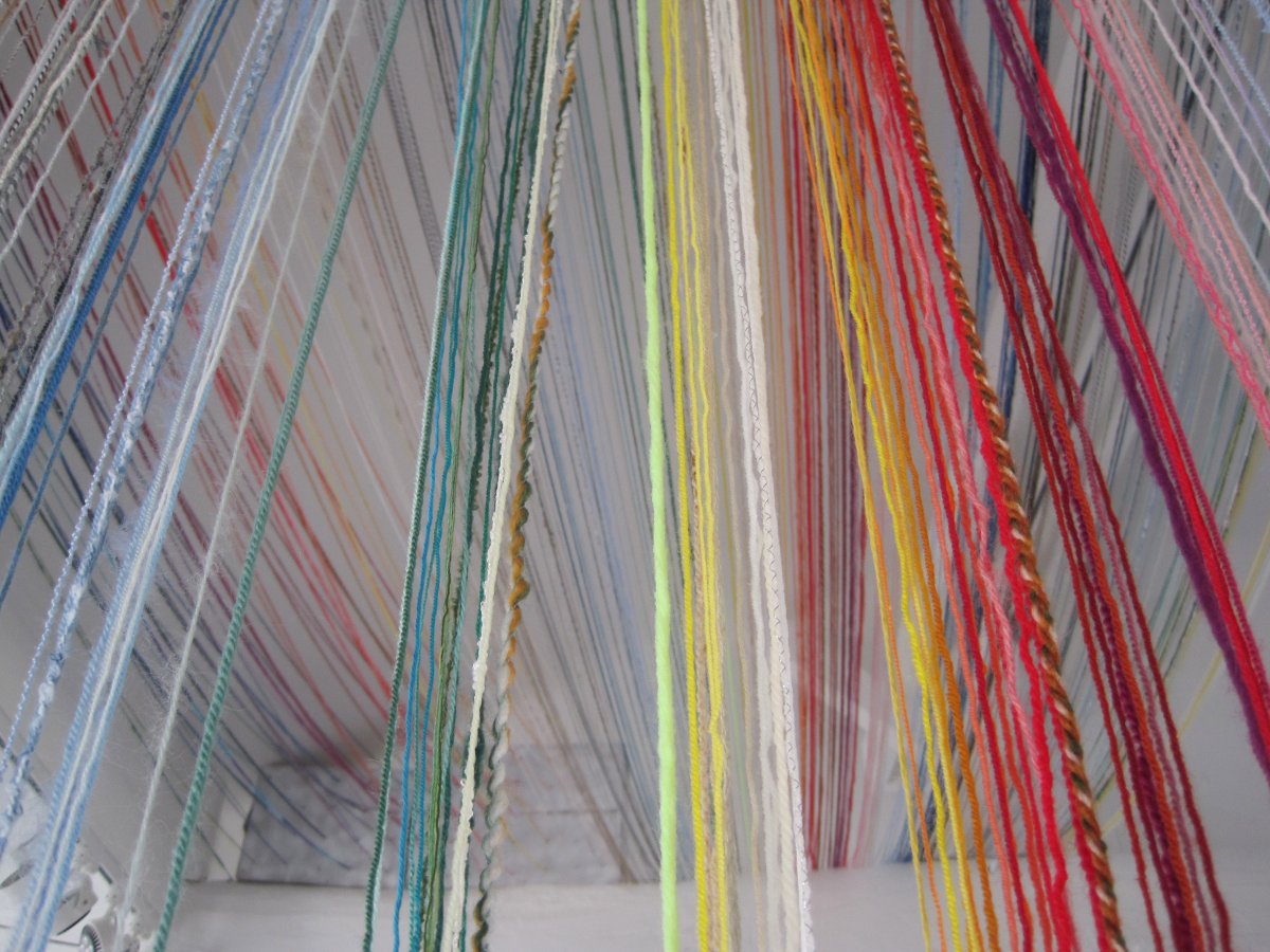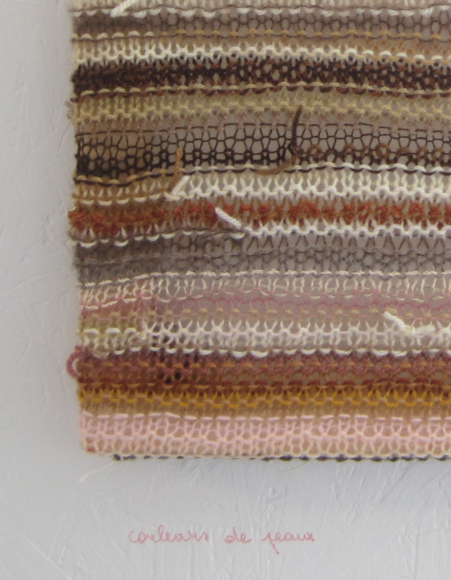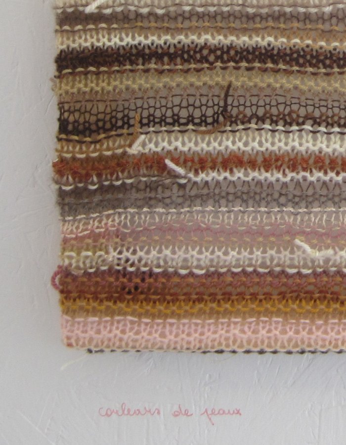 Dérouler un amas de laines entortillées crée des pelotes aléatoires, données à tricoter aux habitants et posées sur châssis, voici des peintures de paysages mentaux : les ciels de Vendée, couleurs de peaux, ou la mer et ses habitants (dérivants)…
