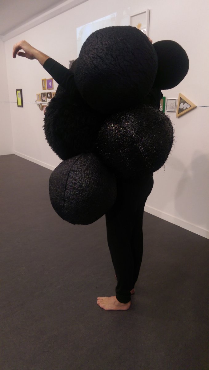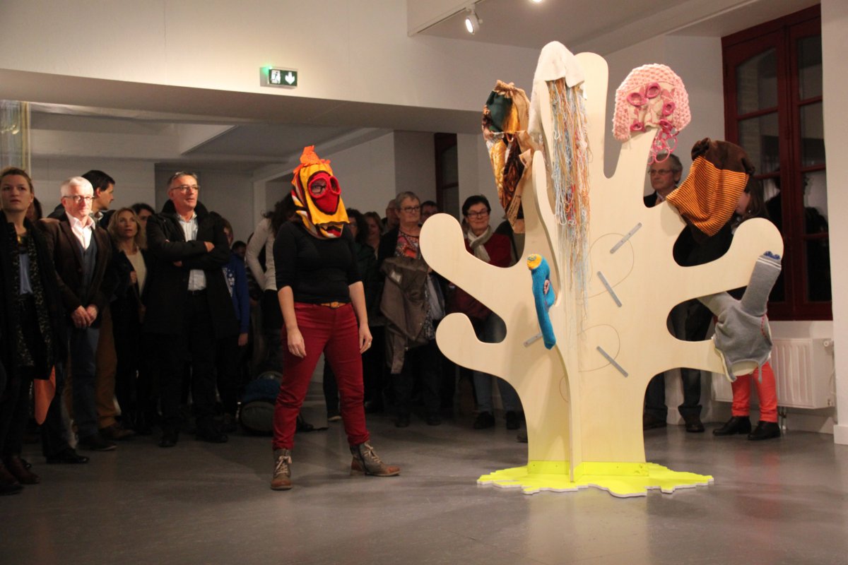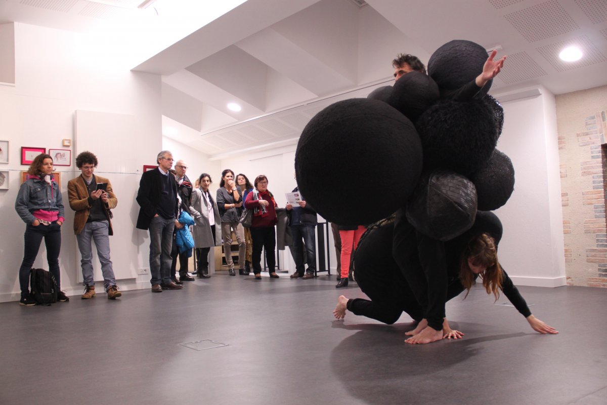 Le soir du vernissage les danseurs de Lucane (Aëla Labbé et Stéphane Imbert), habitent deux pièces de la première valise, comme des sculptures vivantes ; et les élèves de l’association de danse de la commune déambulent la tête dans les cagoules.