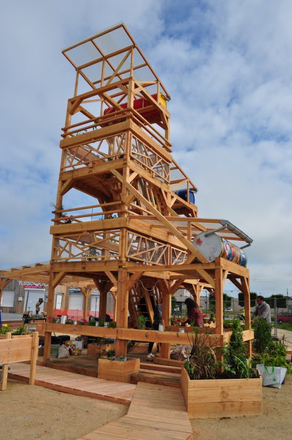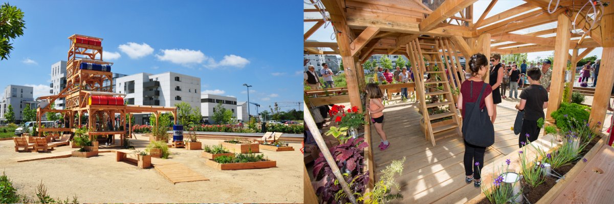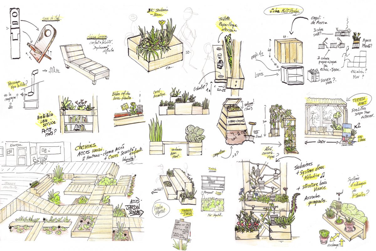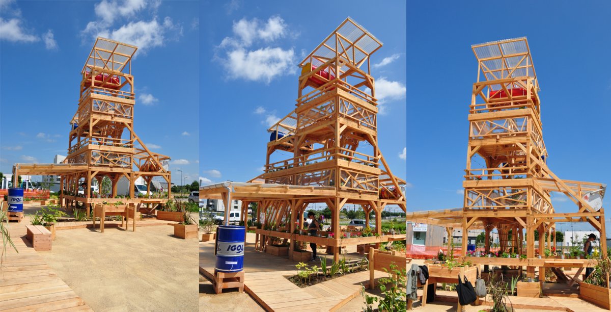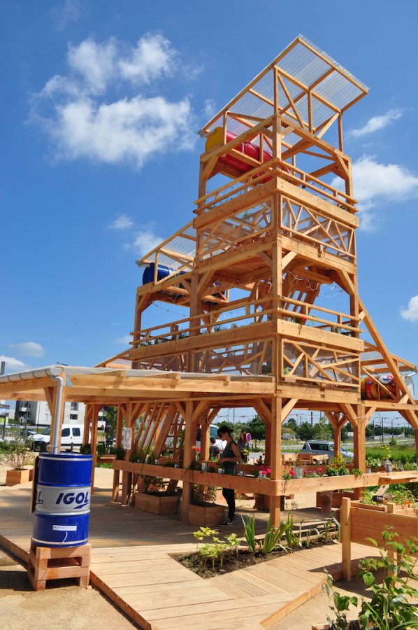 Un jardin, comme base de données (végétales), et d’échanges intergénérationnels. Un système qui récupère les eaux de pluie, les stocke et les redistribue via des sondes, nourrissant juste ce qu’il faut, au goutte-à-goutte les plantes, sur des systèmes hydroponiques raisonnés (cultures optimisées hors-sol). gouttes d’eau tombant tel un métronome au rythme du besoin de ce jardin suspendu.Un jardin aussi comme lieu de rendez-vous, pour jardiner, discuter, lire, contempler de son sommet la ville et la campagne, un espace de rencontres culturelles, de poésie.Un espace libre de communion entre un quartier, sa nature et ses habitants.Un espace libre de communion entre un quartier, sa nature et ses habitants.