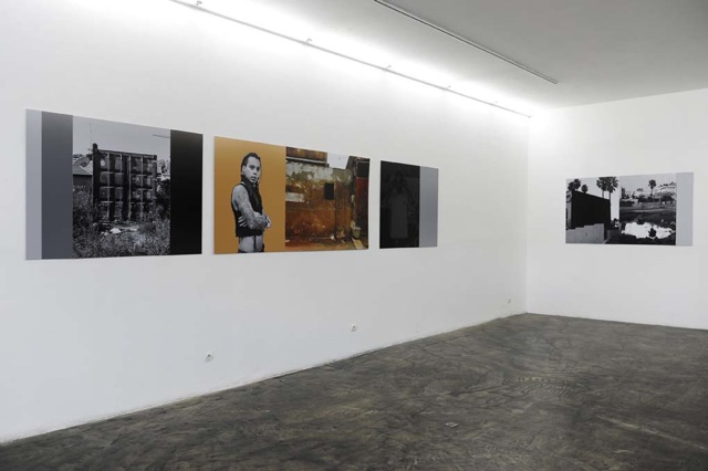 Coiffée de son voile, une jeune femme – une étudiante – affirme sa culture musulmane. Le titre de la photo indique qu’elle vit à Hébron – en Cisjordanie, mais elle pourrait très bien habiter ailleurs. Elle porte un imperméable clair plutôt commun (j’ai presque le même) et surtout, grâce à un détourage Photoshop® sauvage revendiqué par la photographe, elle échappe à son contexte. Chimène Denneulin utilise fréquemment ce procédé qui confine au sabotage de l’outil graphique pour mettre en relief les figures qu’elle photographie. Grâce à cela, plutôt qu’une ville palestinienne en ruine comme on en voit presque tous les jours dans les médias, le fond d’où surgit la jeune femme de Hébron est un aplat rouge digne d’ une Marylin de Warhol. La couleur est d’ailleurs très présente dans les installations de Chimène Denneulin, pour isoler, rythmer, contrebalancer les figures, comme chez l’artiste canadien Ian Wallace par exemple. Sur cette photo, le fond rouge transforme la jeune femme voilée en une icone d’aujourd’hui.