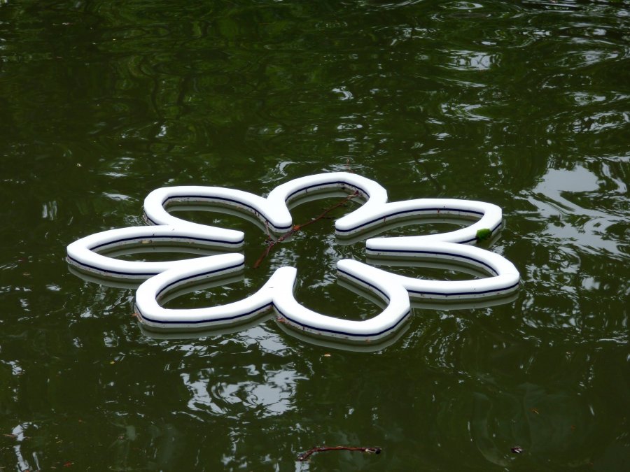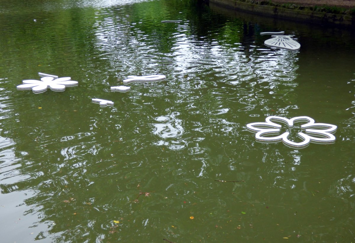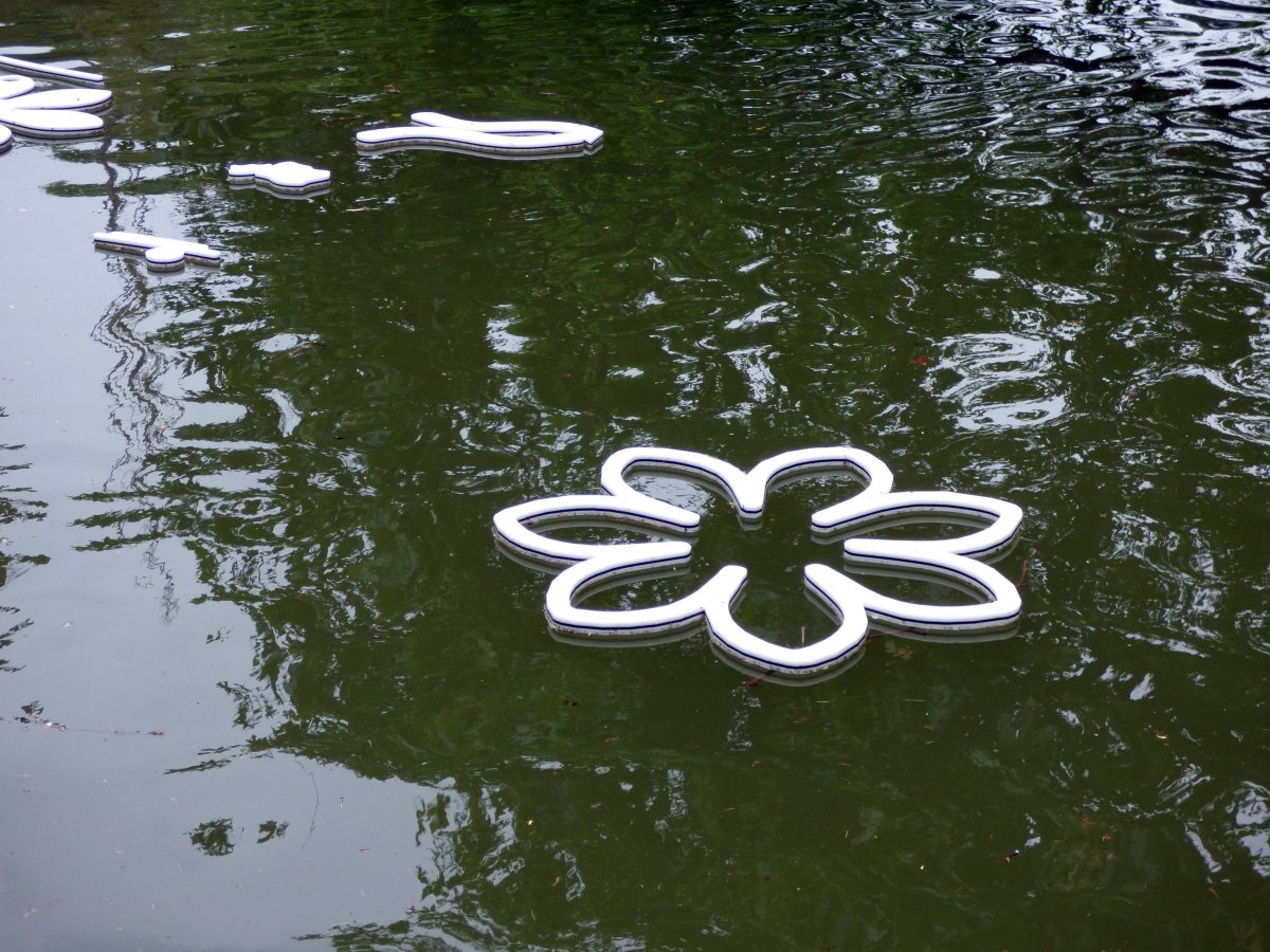 Le pressentiment de la naissance du jour est un ensemble d’éléments flottant sur l’eau. Reprenant l’esthétique de l’univers aquatique, elles sont cependant dépossédées de leurs couleurs. Sorte de squelettes de formes, ces sculptures flottantes convoquent des images de l’ouvrage de Virginia Woolf les Vagues (fleur à sept branches, nageoire, vagues). Sorte d’hommage, le titre Le pressentiment de la naissance du jour évoque le phénomène de l’éternel renouveau.