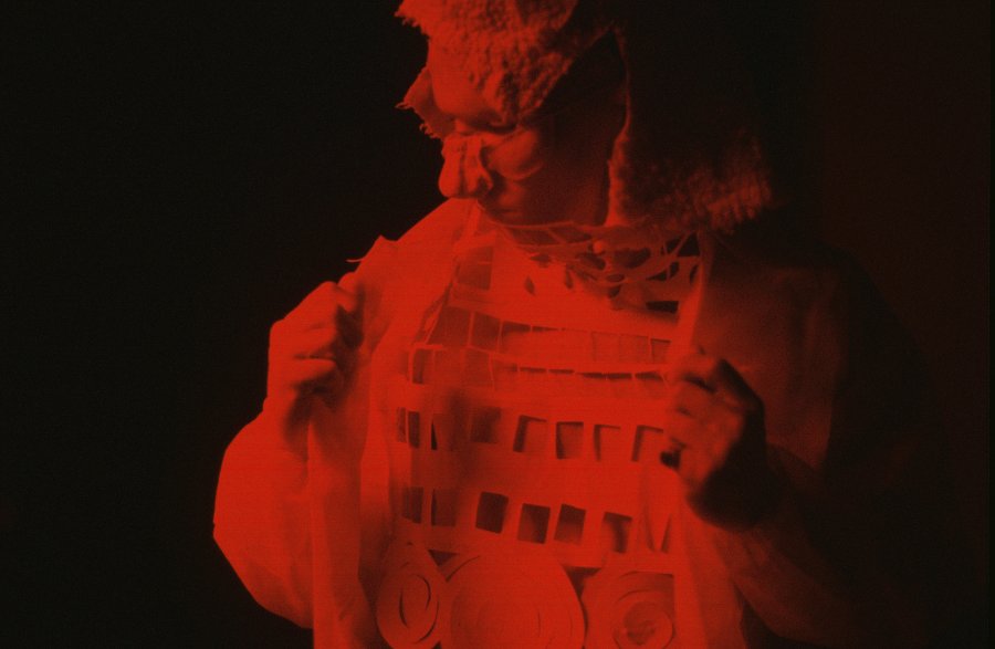 Sortir le vêtement de l’impasse, comme pour la photographie, c’est réinjecter du vivant là où le corps est labellisé, glacé, démembré. Sans violence, ce que capte cet espace flottant de lumière rouge est un regard, une caresse, une ombre. Les frontières se déplacent, nous ne reconnaissons plus dans nos orientations, notre lieu est un passage. Notre image ne s’inverse plus, nous regardons l’autre, nos mouvements se raréfient, nous fabriquons d’autres images.