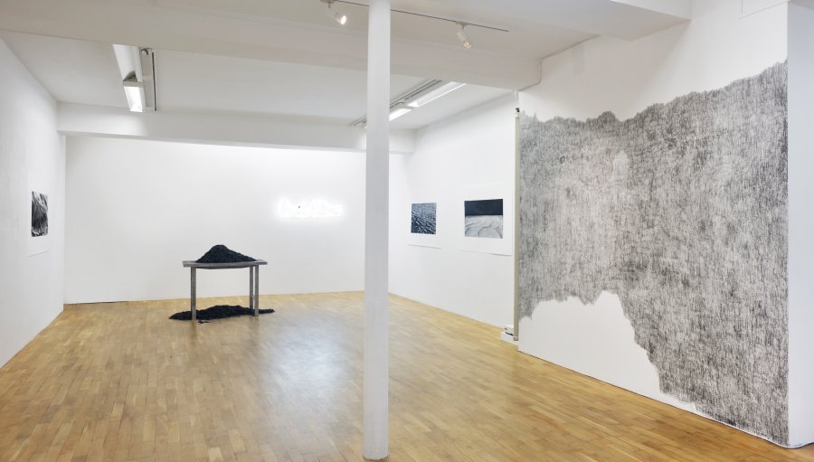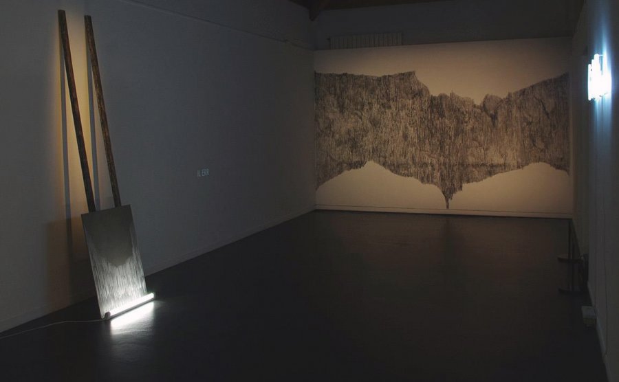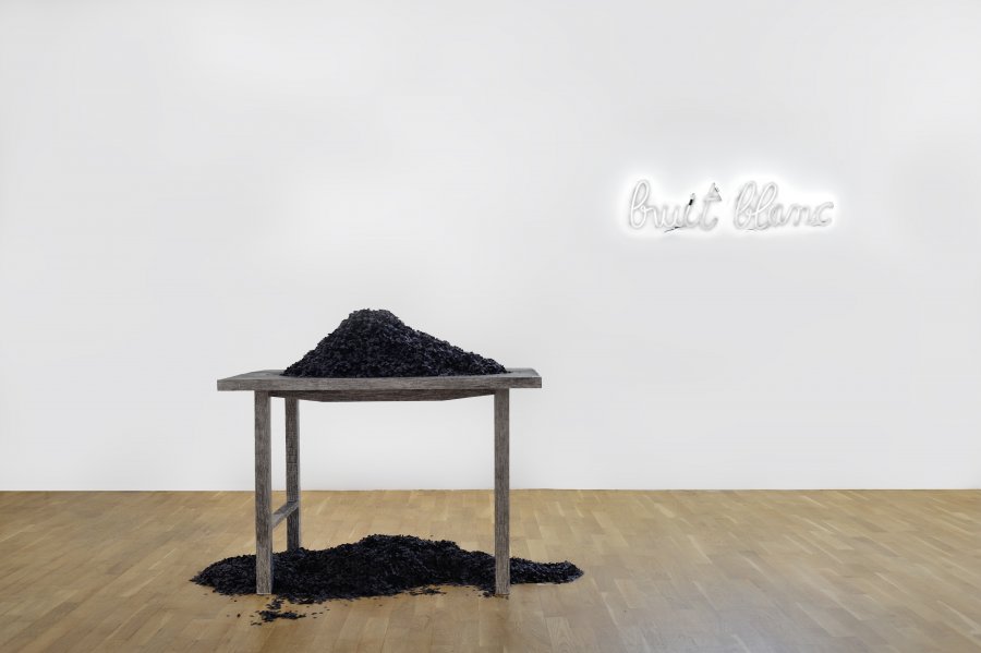 Installation sonore, vidéo, dessins, néons, table et confettis.