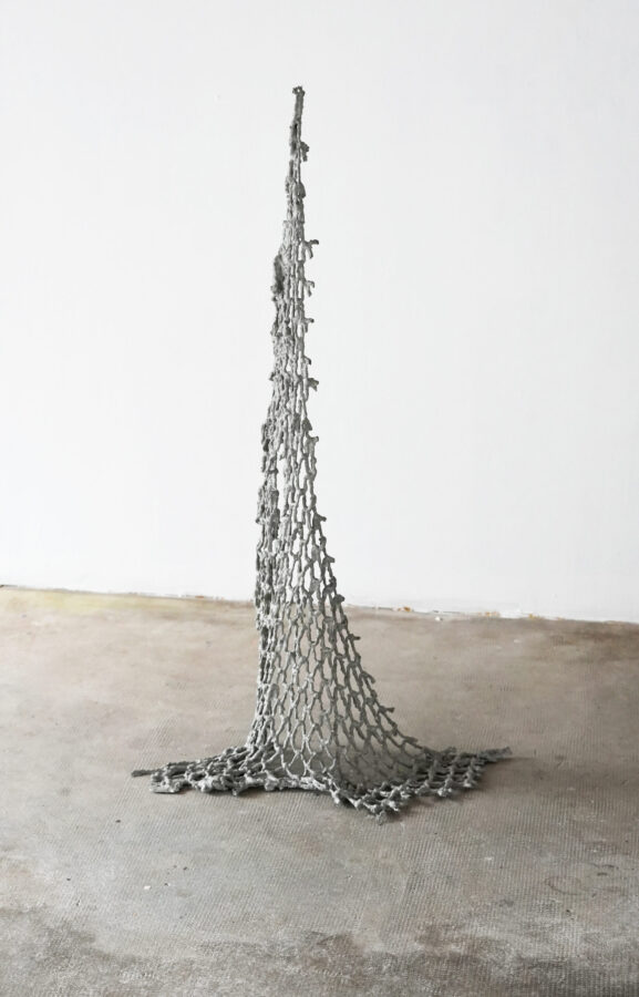Les larmes de sirène est un projet de recherches formelles autour de l’écosystème marin. Je récolte des objets, naturels comme artificiels, rejetés par la mer après des tempêtes ou simplement déposés au rythme des marées. Je les assemble ou les modifie par des gestes simples et empiriques. Rebus de filets de pêche figés dans le béton, tissage d’algues, sculptures de flotteurs, tous ces éléments dialoguent et créent un corpus de formes qui visent à interroger nos interactions avec l’environnement maritime.
