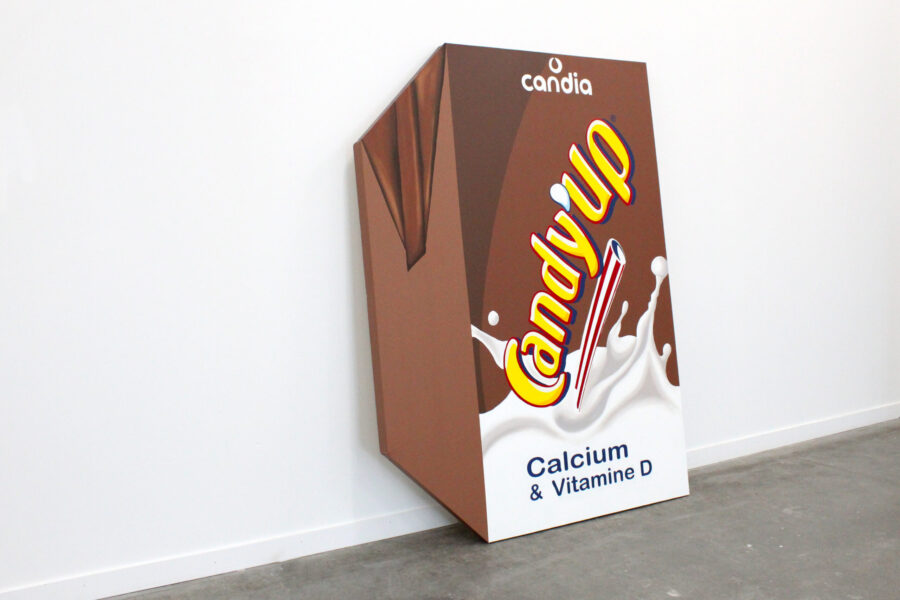 Les peintures de cette série rejouent la question de l’adresse, et ont la spécificité d’avoir un·e destinataire·ice précis·e. Les objets quotidiens de consommation agrandis sur châssis sont envisagés pour leur valeur anthropologique d’attachement et déplacent la question du goût vers les affects individuels liés à l’origine sociale. L’Actimel pour mon frère, la pizza pour ma chienne Cola, le pesto pour Émilie, les Mon Chéri pour mon chéri, le Tabasco pour Salomé, les sardines La Perle pour Élise, le vernis à paillettes pour Chloé, la bolognaise pour ma mère, les Philip Morris puis la vapoteuse pour moi… Elles sont exposées en ensemble modulable, en appui contre le sol et le mur, mimant la remise et le stock de peinture.