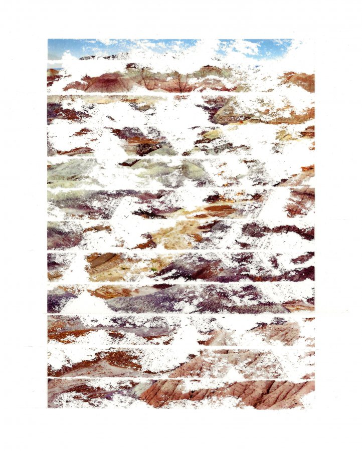 Fanette Baresch, «Paysage/Cicatrices n°3», 2019, Fragments de photographies, ruban adhésif, 30x24 cm, photographie : Droits réservés