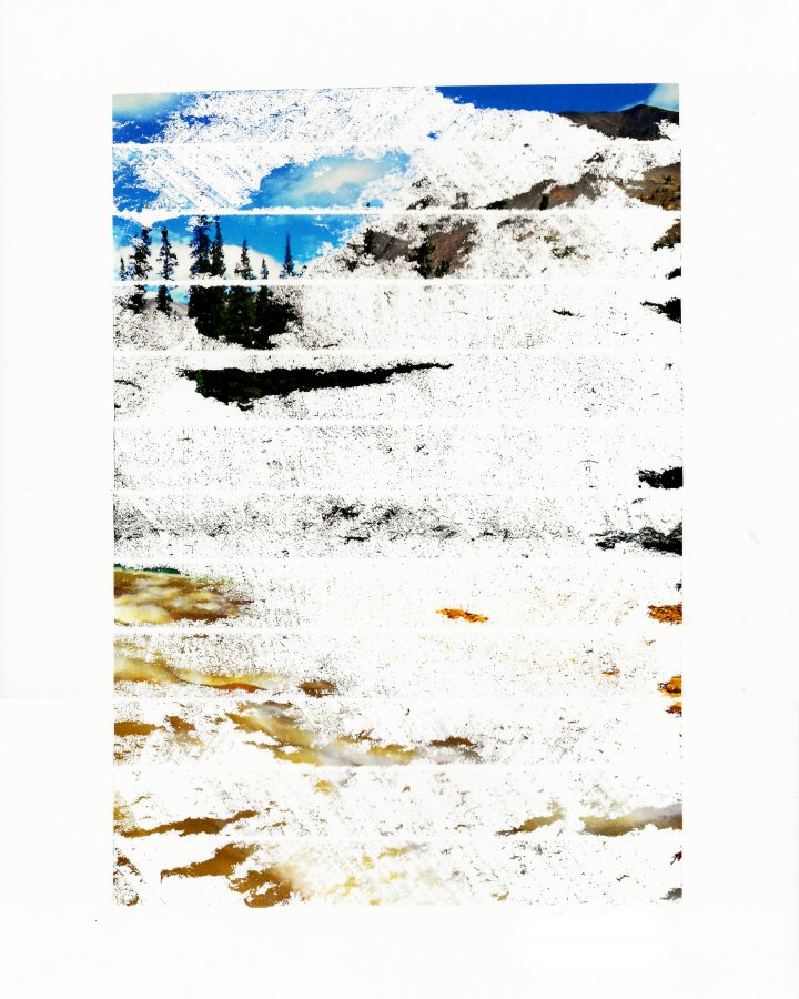 Fanette Baresch, «Paysage/Cicatrices n°7», 2019, Fragments de photographie, ruban adhésif, 30x24 cm, photographie : Droits réservés
