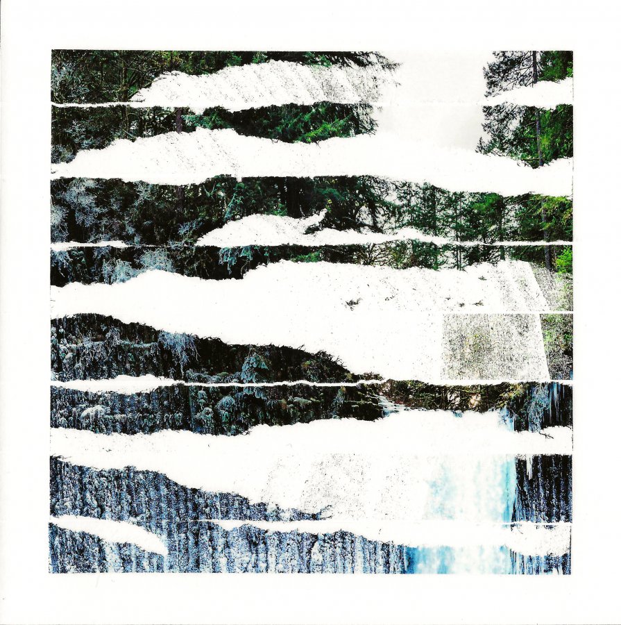 Fanette Baresch, «Paysage/Cicatrices n°16», 2021, Fragments de photographie, ruban adhésif, 18x18 cm