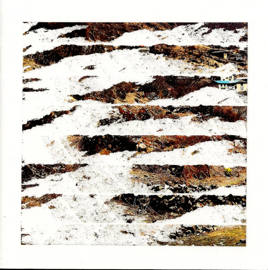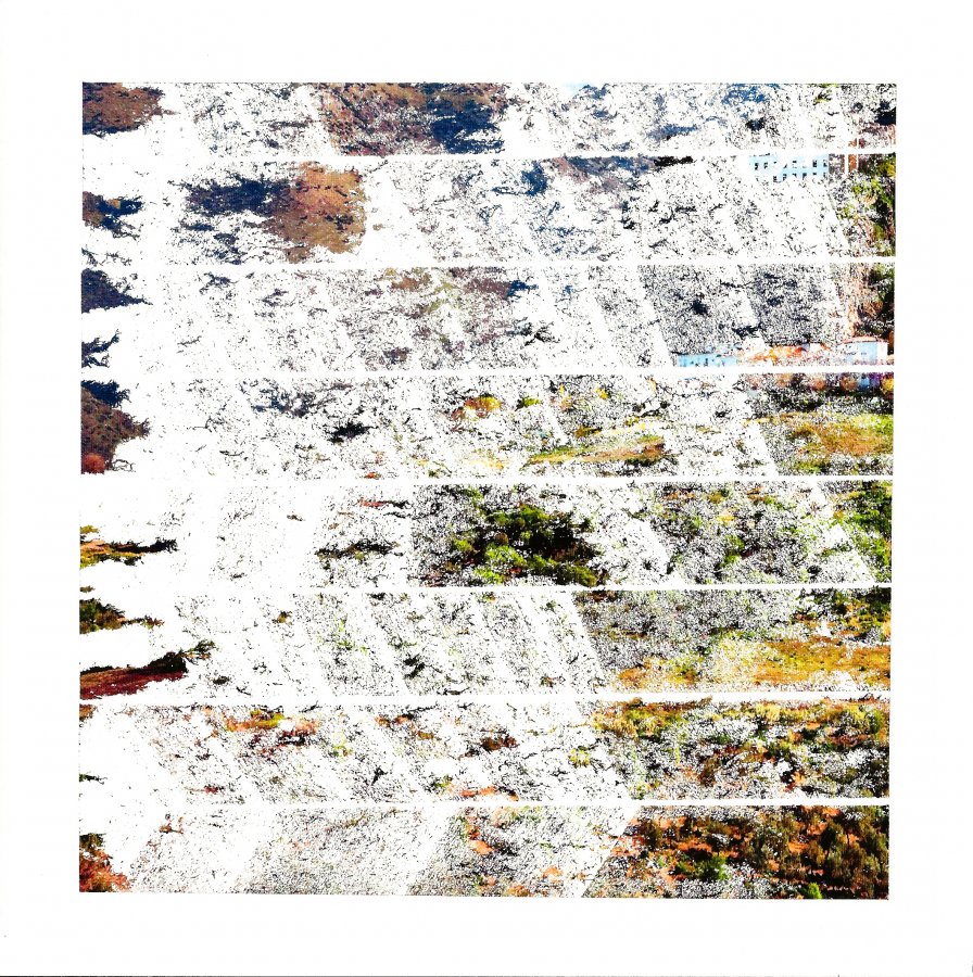 Fanette Baresch, «Paysage/Cicatrices n°20», 2021, Fragments de photographie, ruban adhésif, 18x18 cm