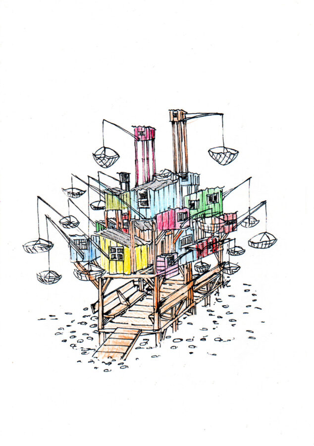Espace-territoires, mi-architecture, mi-oeuvre, en bois local durable, en résonance avec les nouveaux