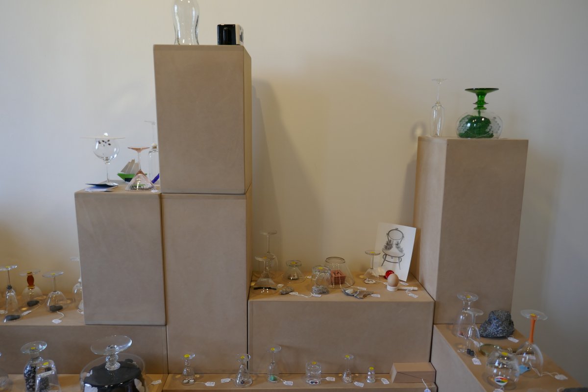 Collection de verres, transformés en sous verre, extraits de collections diverses et personnelles prêtées spécifiquement pour l'exposition par les habitants de Fougères. Les objets présentés sous verre sont des objets divers, faits et trouvés au fil des pérégrinations de Sam Moore entre 2010 et 2019.