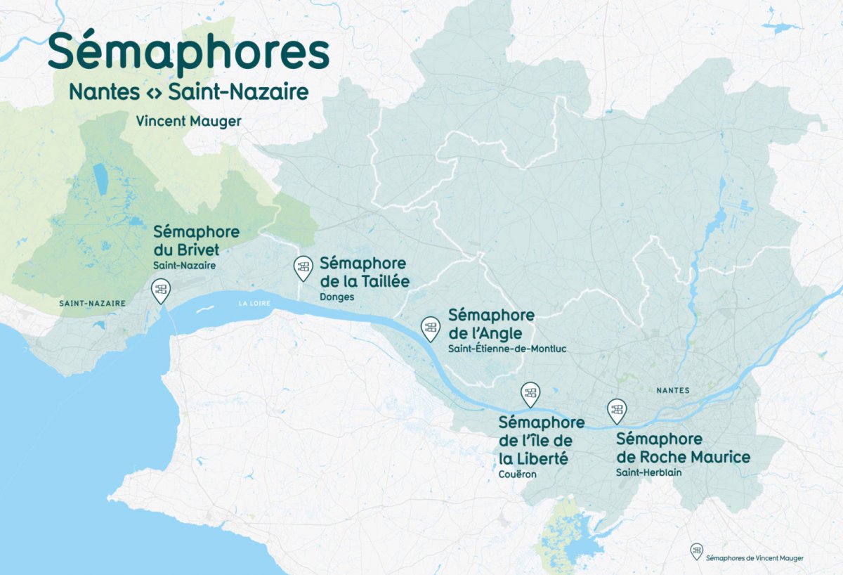 «La démarche Eau et Paysages, lancée par le Pôle métropolitain en 2014, a souligné l’importance de prendre de la hauteur pour mieux révéler les paysages. C’est pourquoi le Pôle métropolitain Nantes Saint-Nazaire, suite à une consultation artistique en 2017, a sélectionné l’œuvre « Sémaphore » imaginée et conçue par l’artiste Vincent Mauger avec les ateliers Perrault Frères et ECSB.