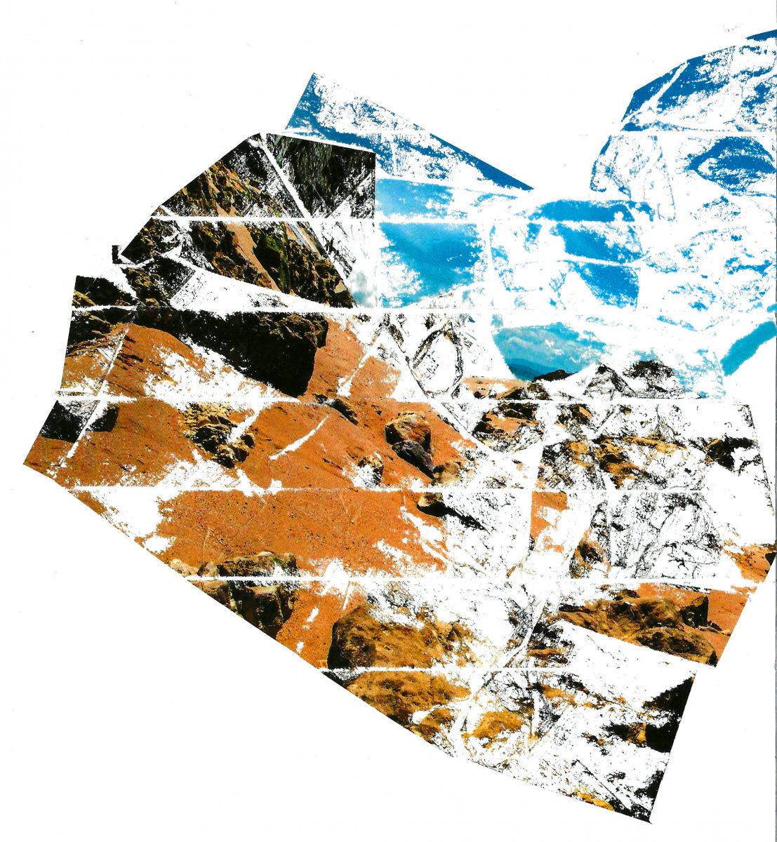 Cherchant à refaire surface absolument, le traumatisme surgit à travers les déchirures, les vides et les interstices entre les strates. Le paysage agit comme une structure, un réceptacle pour donner forme au chaos intérieur. Dans cette interdépendance du paysage au geste, la réalité photographique se transforme. Fragments, rythmes et textures font émerger un nouveau langage, un espace de résistance, là où la parole et la pensée sont empêchées.