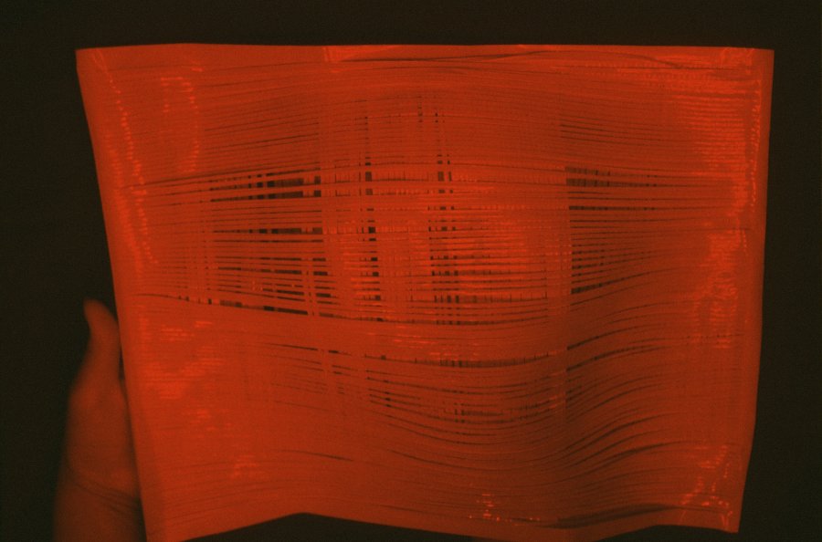 Cette première étape a permis de travailler le papier photographique à partir de différentes techniques et de multiples matériaux pour réaliser les tissus nécessaires à la conception de nouveaux Perméables (le deuxième temps du projet Lille Moriceau).