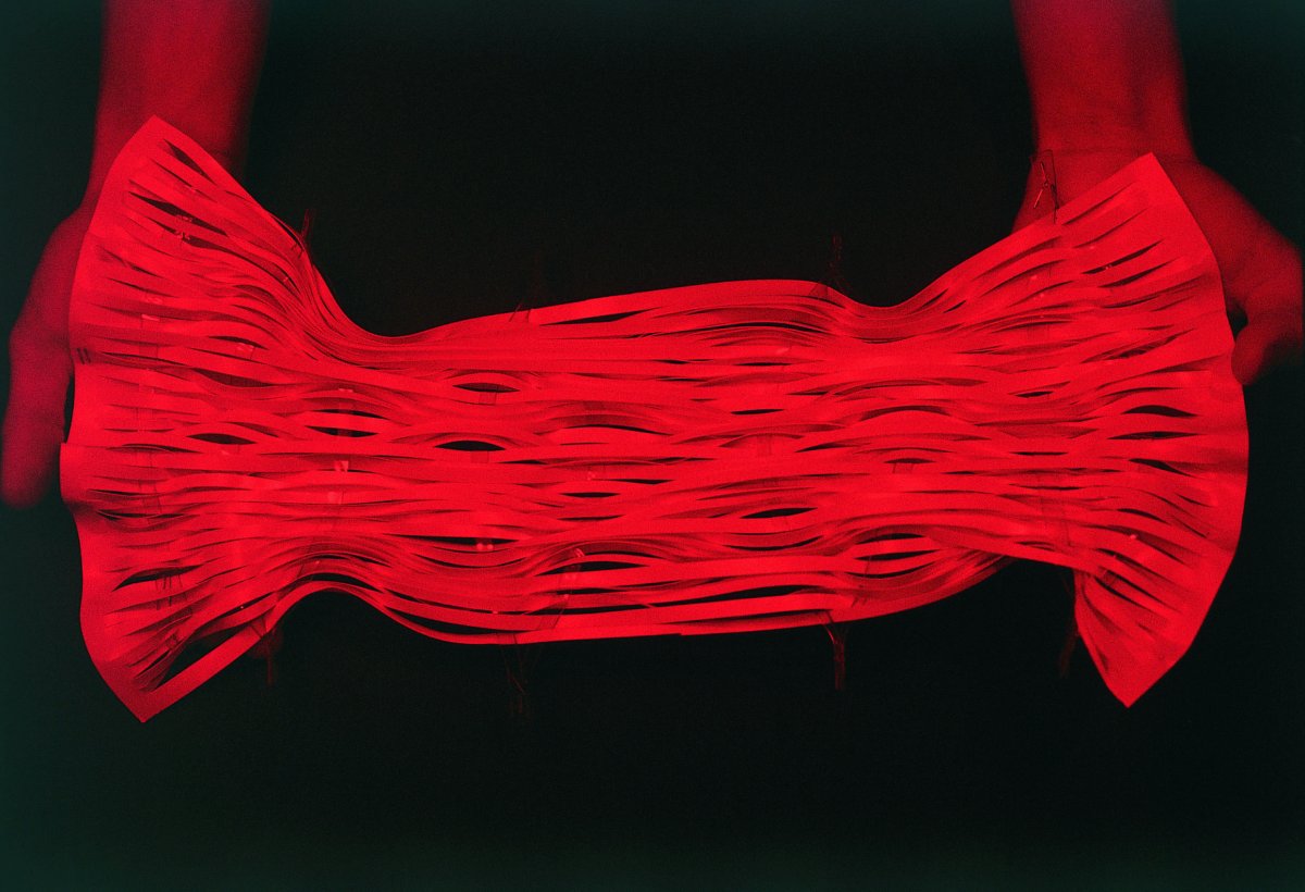 1Le Perméable (1995) est un vêtement réalisé en papier photosensible non impressionné et destiné à ne pas être impressionné. Conçu en lumière rouge inactinique, il ne peut être vu que dans le contexte de cette lumière, à l’abri de toute autre éclairage. Par extension, tout vêtement conçu sur le principe du Perméable porte ce nom générique. Le Perméable est le point de départ du projet des Perméables.