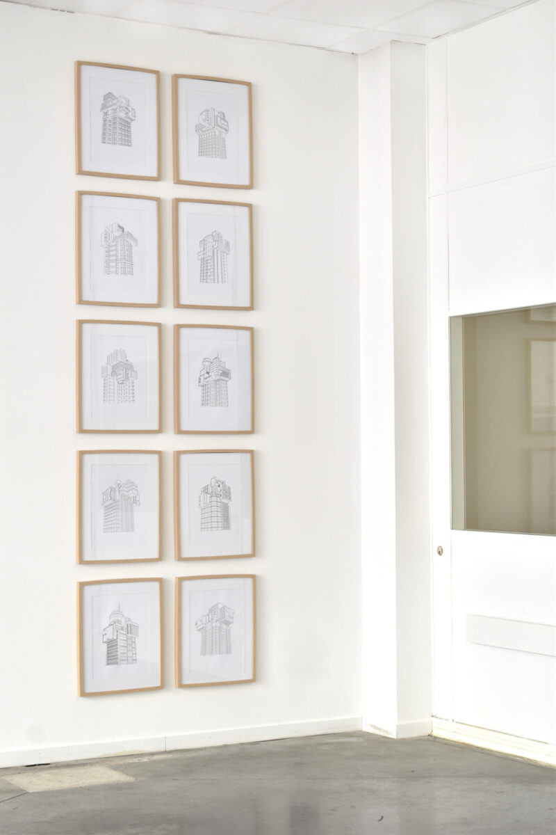 Par des faces à faces gênés et des juxtaposition fortuites d’architectures, la série évoque le développement quasi entropique de la Ville que Rem Koolhaas nommait la Bigness. Le building, symbole de puissance et de modernité, subit ici par le dessin une forme de hacking formel, un réassemblage qui donne lieu à des tumeurs urbaines symptômes d’une frénésie constructrice propre à l’homme.