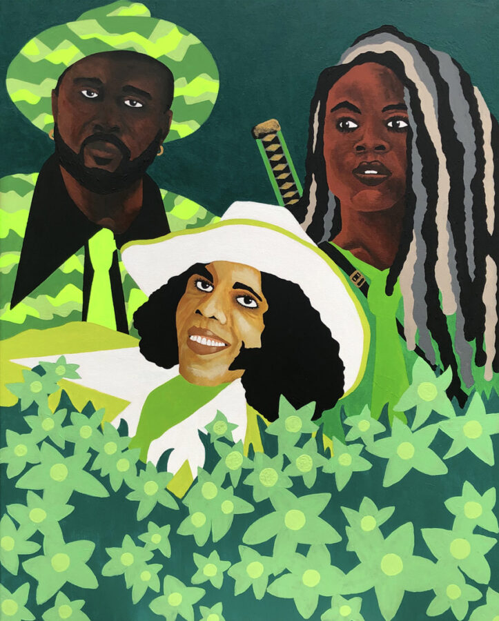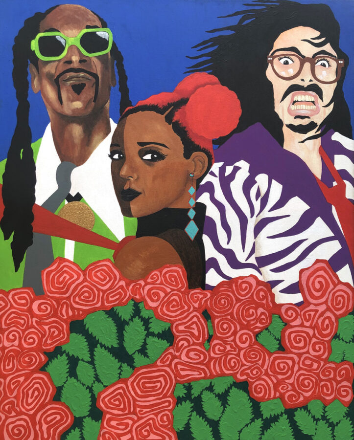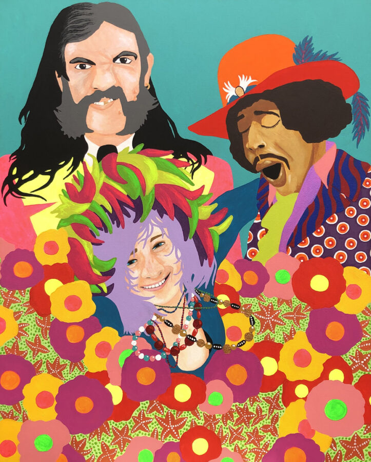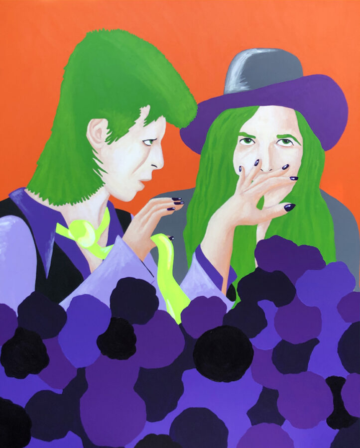 « L’Union » est un projet au long cours. Repartir avec des techniques classiques, mise aux carreaux, peintures d’études, sur des supports classiques, toiles 25 Figure, pour y présenter, suite à des montages photos, des rencontres improbables d’icônes jalonnant ma culture picturale, musicale, littéraire ou politique.