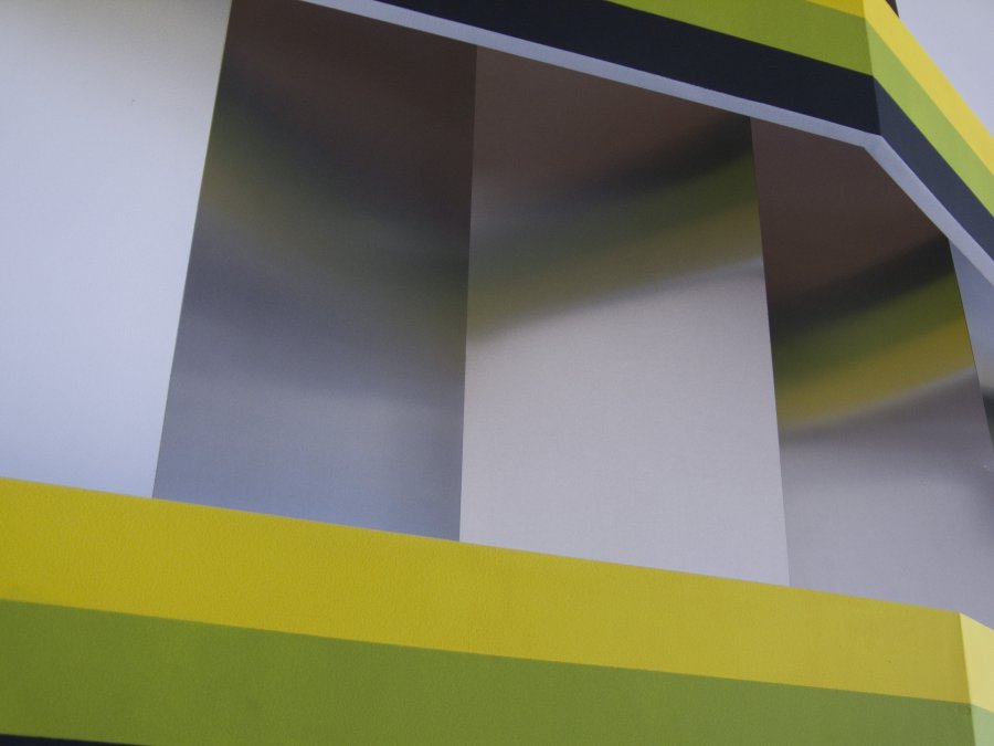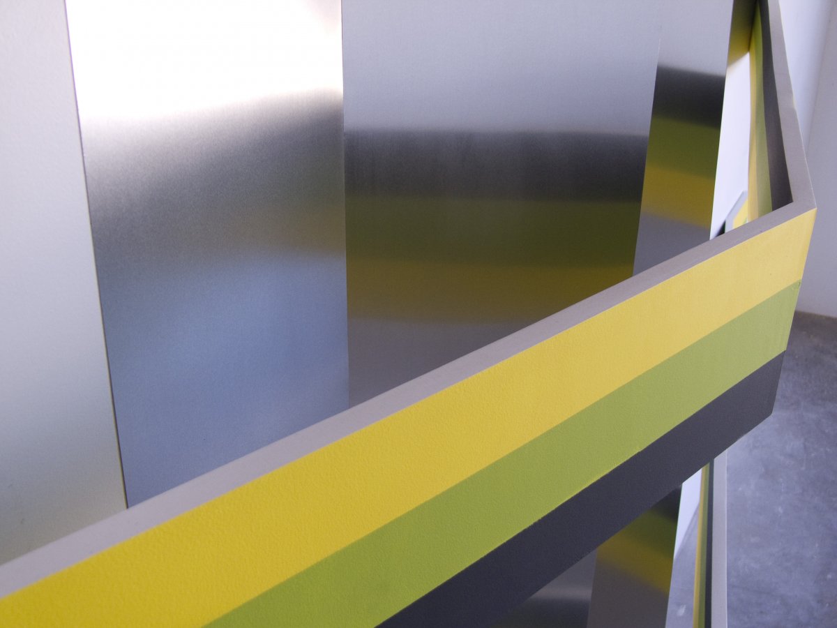 Sculpture en inox et bois peint 210 × 280 × 50 cm Réalisée dans le cadre de la résidence "accident de parcours, Nantes-Marfa", Galerie Owen à Marfa, Texas, USA.