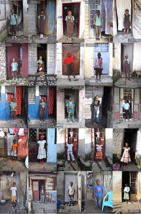 Chaque enfant proposera une photo de lui, de plain-pied, devant sa porte d’habitation, obstacle mental et physique de l’espace privé à l’espace public,