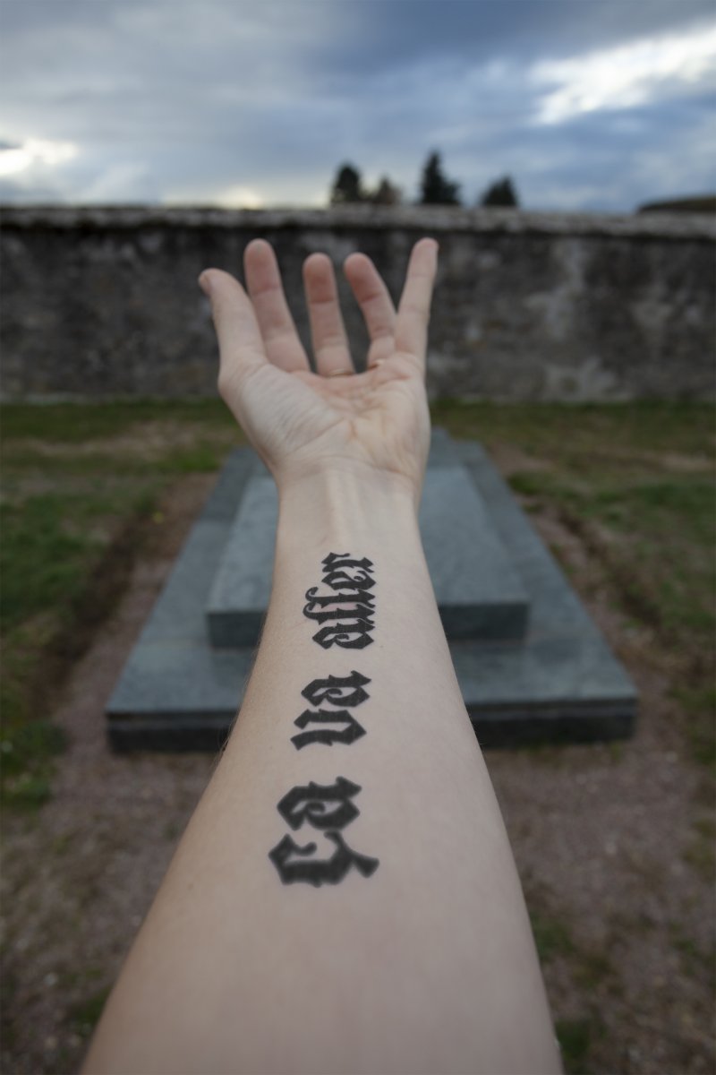 Ici traité de manière allégorique le tatouage devient donc un hommage, le symbole d’un événement, celui d’un souvenir, souvent un mantra.