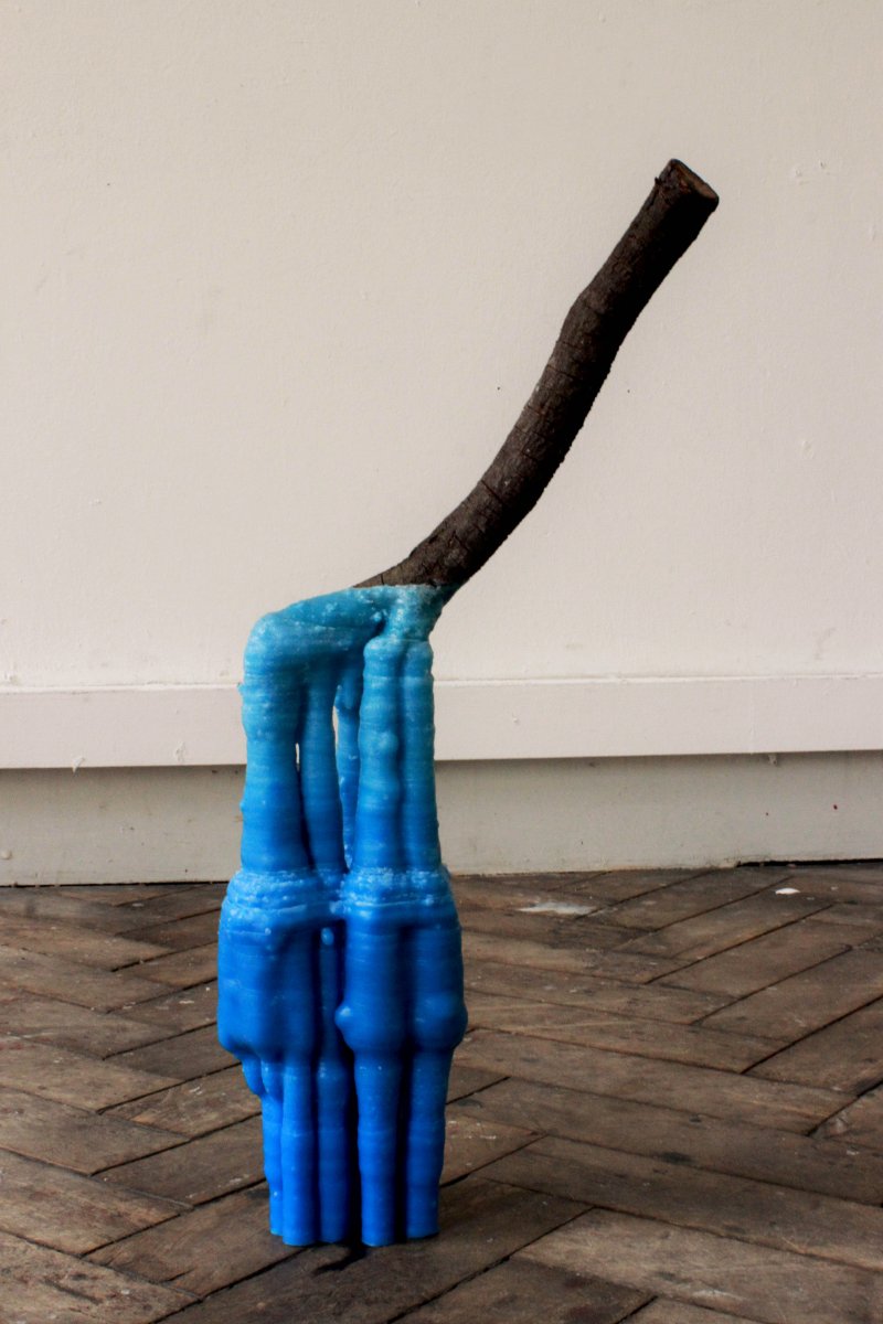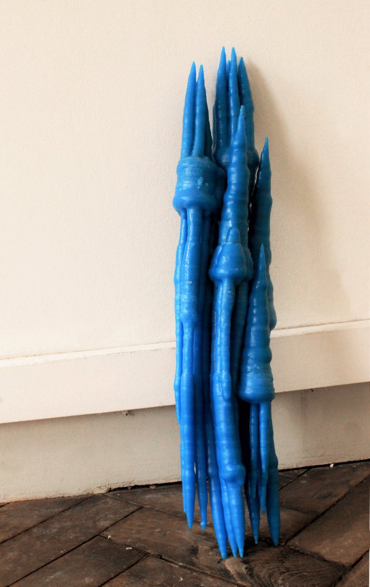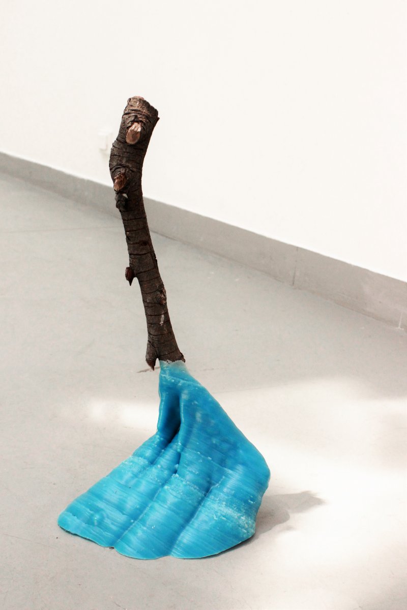 L’image de l’eau artificielle avec son poids et son mouvement immobile évoque la trace mnésique d’une onde autant que l’ancrage psychologique et inconscient qu’elle contient.