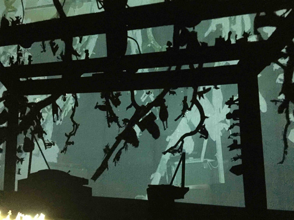 Création Ombres et Lumières avec les 160 dessins de mémés ou de loups des enfants, sur une interprétation libre proche du conte de Benoît Jacques » La Nuit du Visiteur »… Assistance Artistique & Technique Francine Abada et la Bibliothèque Départementale.