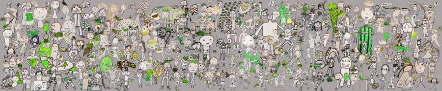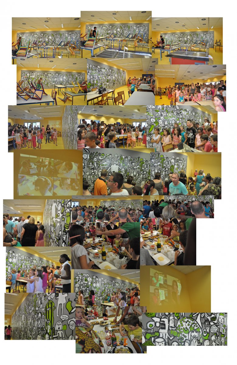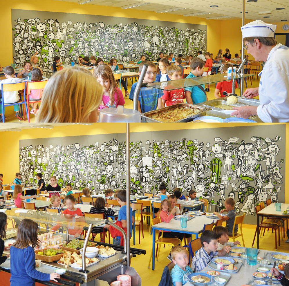 Chaque élève de l’école, s’est représenté avec son plat préféré pour affirmer sa cantine, La Cantine!…Patchwork de visages et d’aliments, la fresque présentera un ensemble d’éléments s’imbriquant dans cette idée festive de consécration de la cantine..