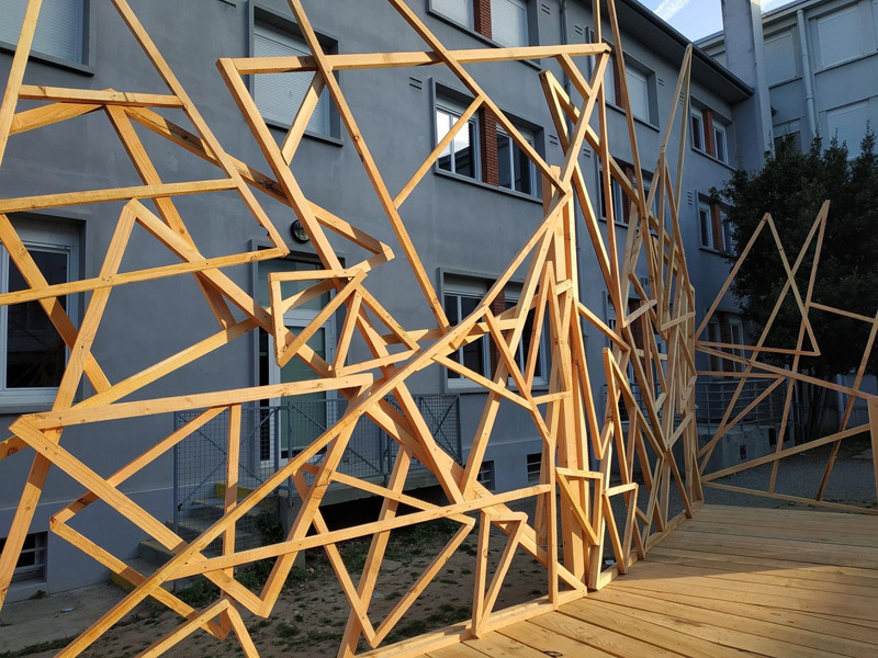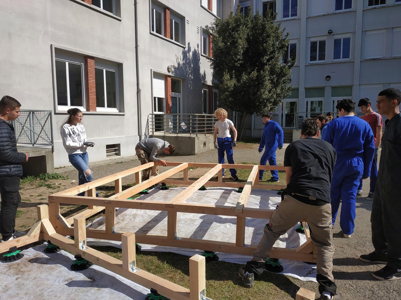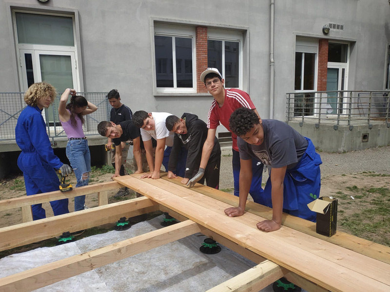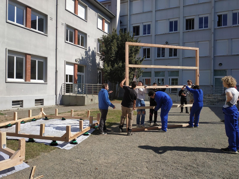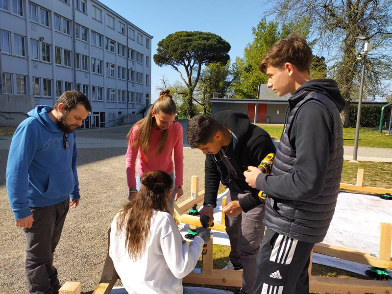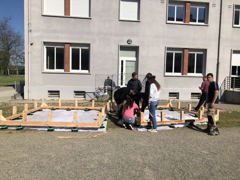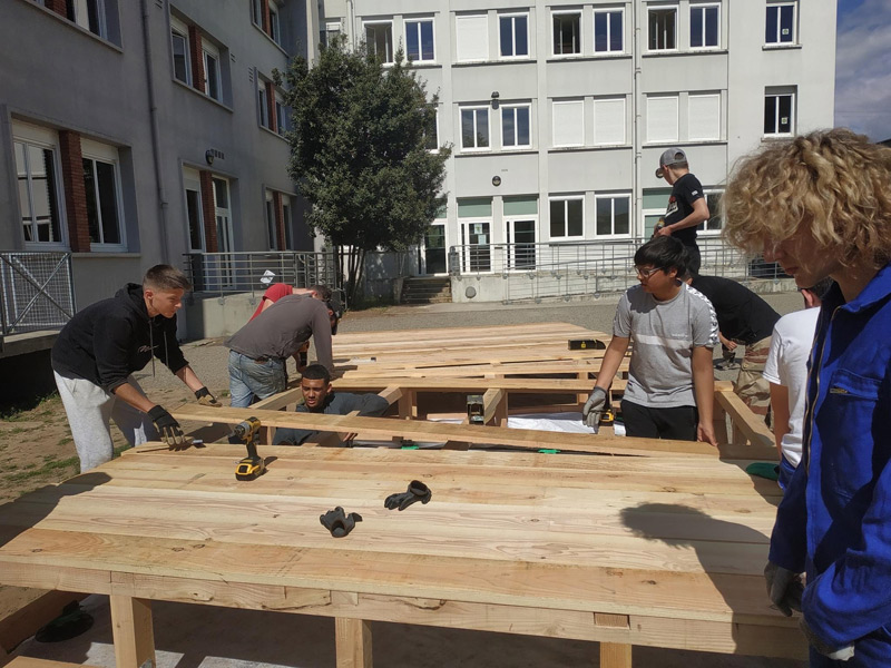 Mais ce sont aussi des adolescents avec leurs énergies et leurs questionnements. Habiter au sein d’un lycée, donc d’une communauté n’est pas toujours simple, accepter le regard, la parole des autres n’est pas une évidence tous les jours, surtout pour un ado ou un jeune adulte. La structure Milpa a donc proposé aux élèves de penser et construire ensemble un espace où ils peuvent se retrouver, se reposer, un espace à eux dans l’enceinte du lycée. Un espace aussi qui ressemblera à leur futur territoire, mi-architecture, mi-jardin avec des plantes du biotope local, du mobilier pensé avec eux participant à cette nouvelle zone à habiter. Un espace conçu par leurs individualités pour créer un habitat cristallisant leurs liens sociaux.