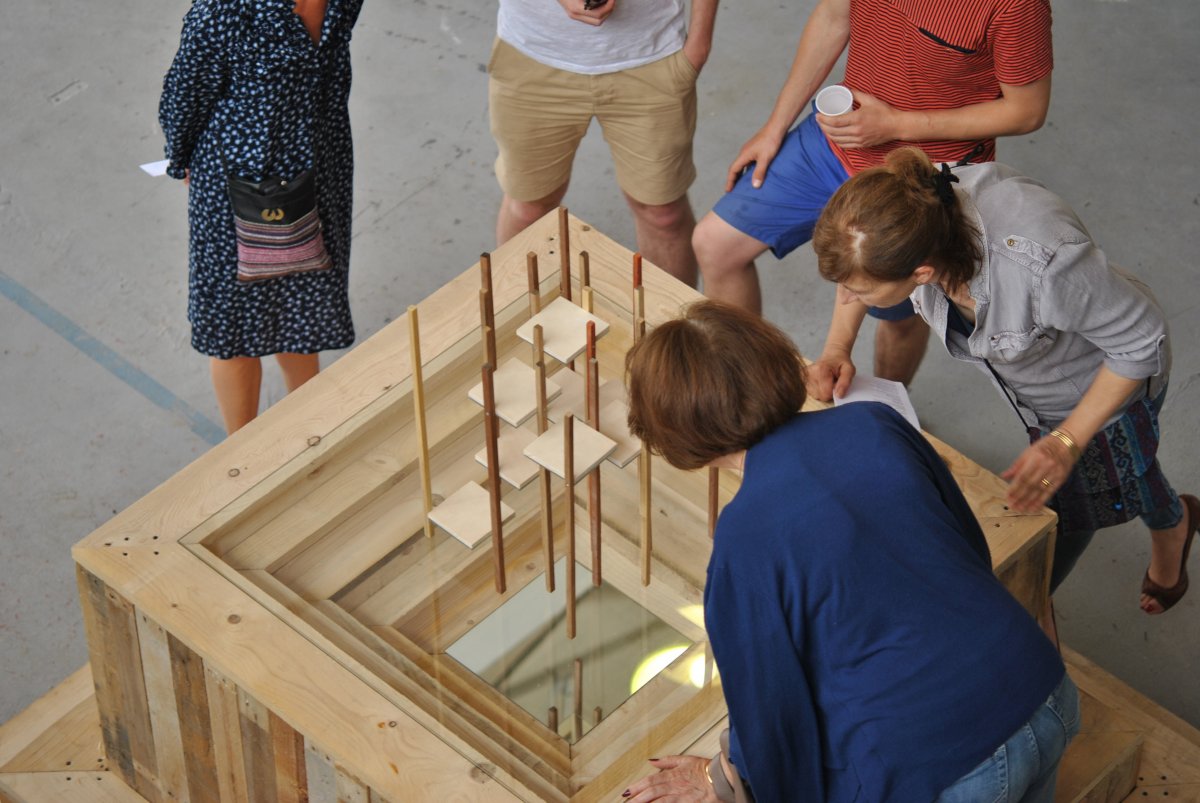 Guillaume Jezy / Jezy Knez, «Monument», 2017, wood, glass, mirrors, with the works of Louise Kress, Claire-Jeanne Jézéquel and Thierry Grand, photographie : Elliot Gaillardon