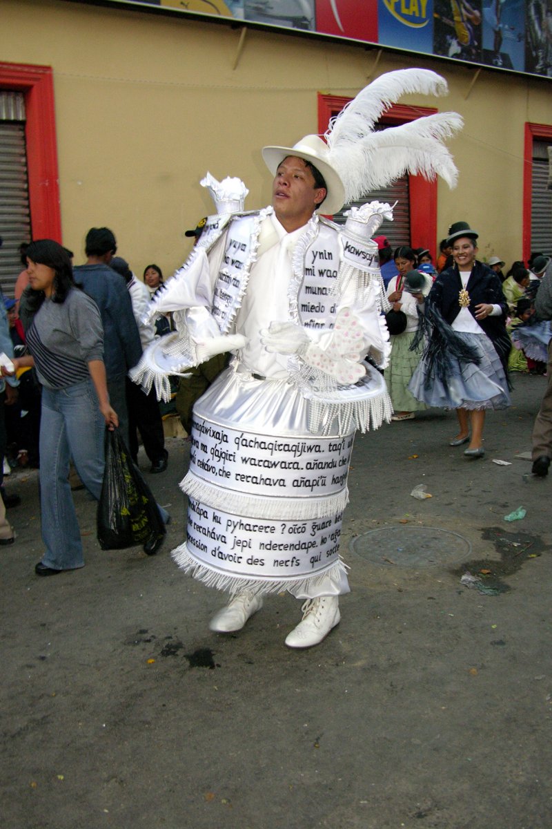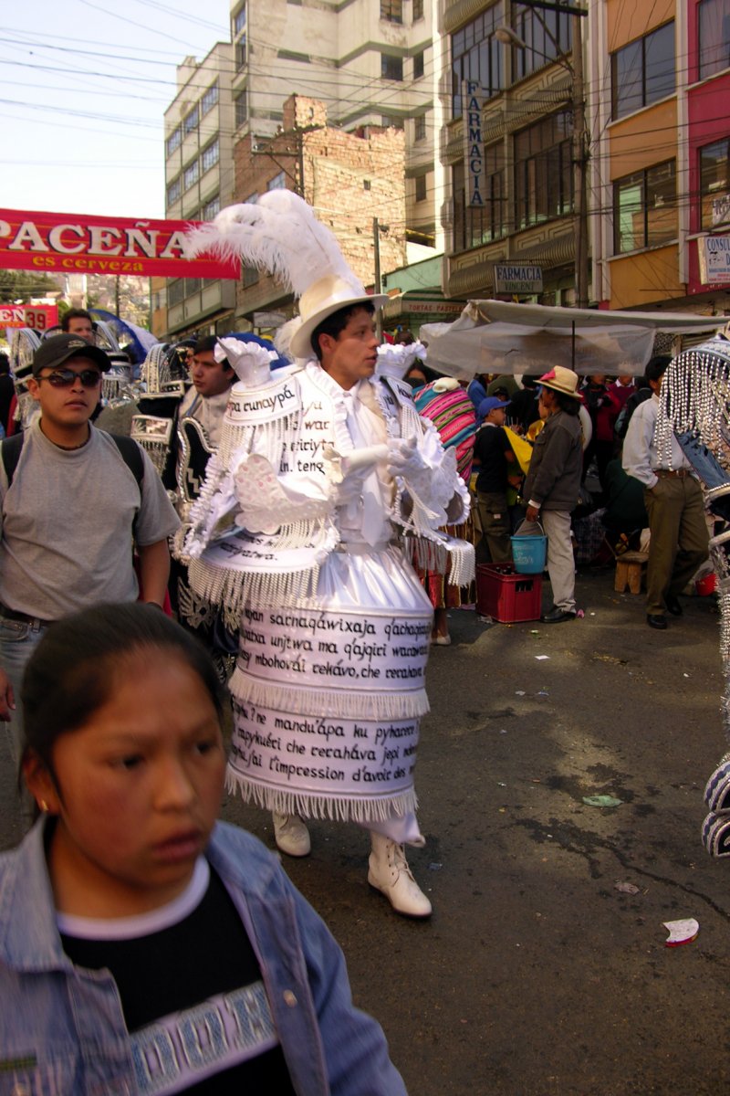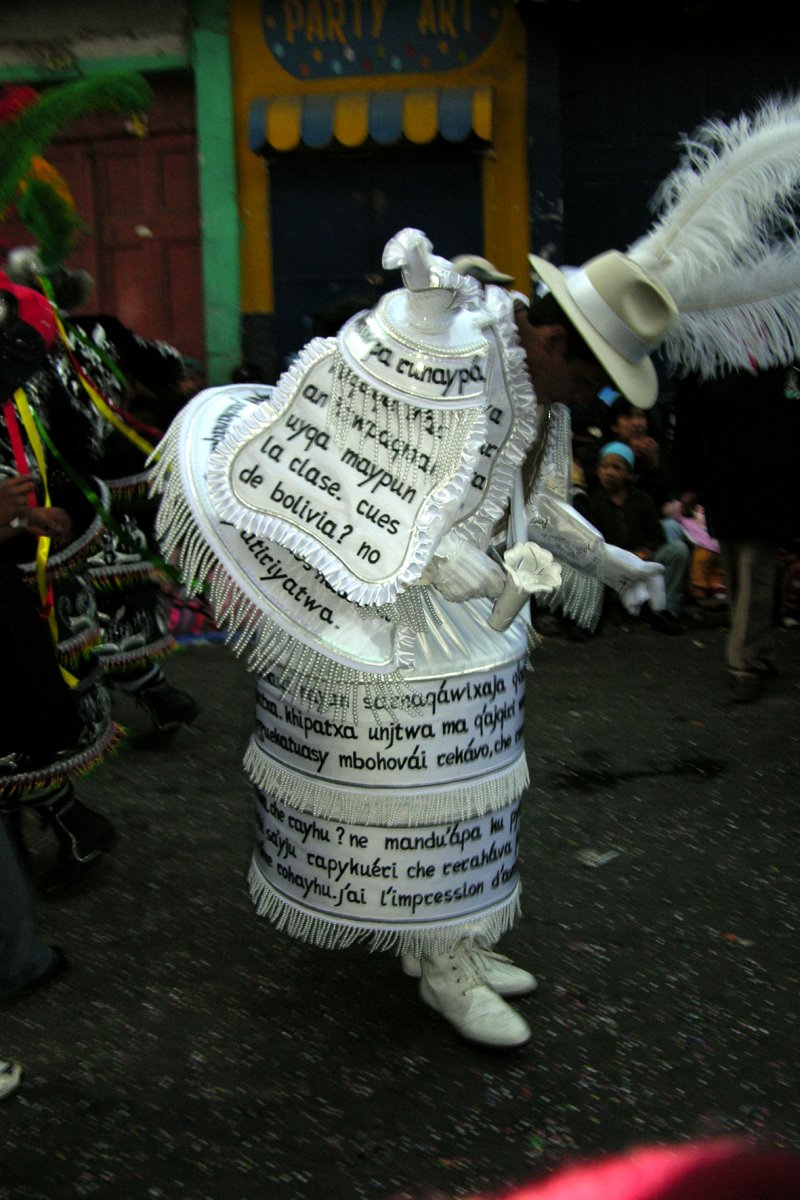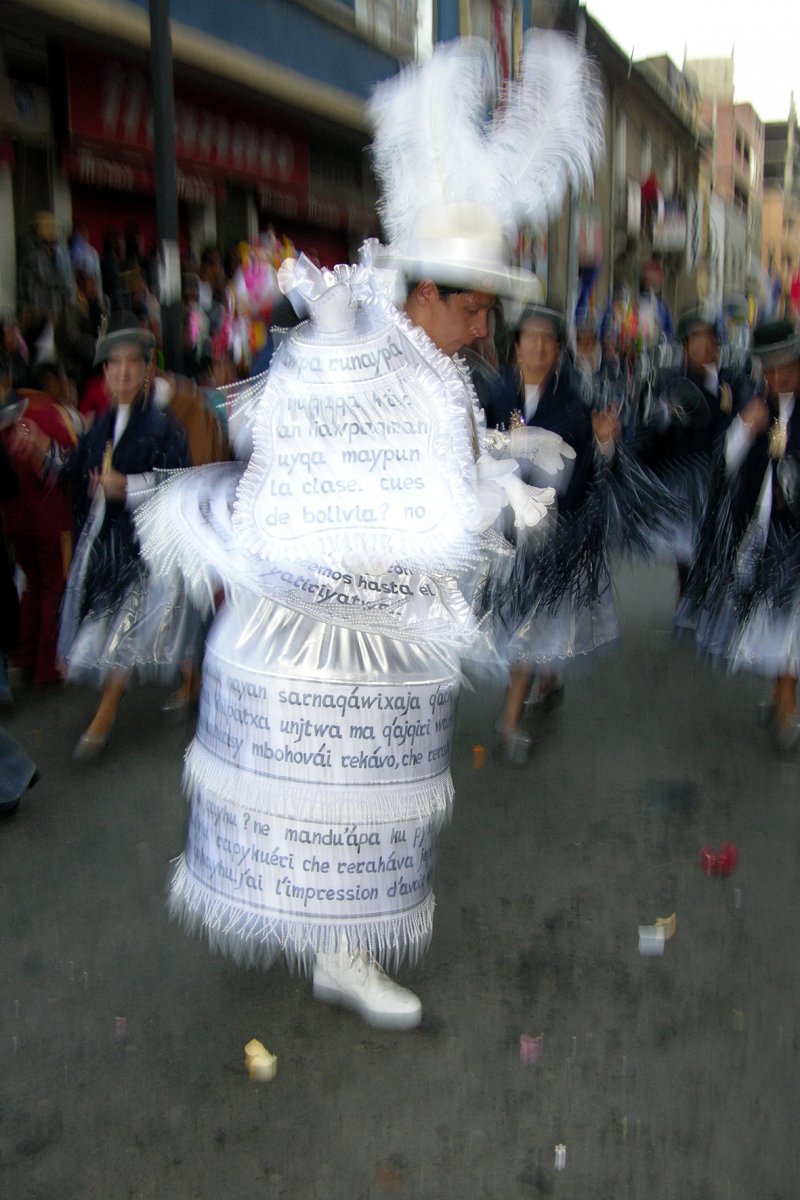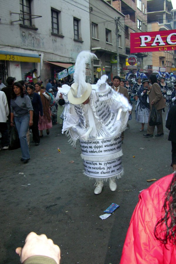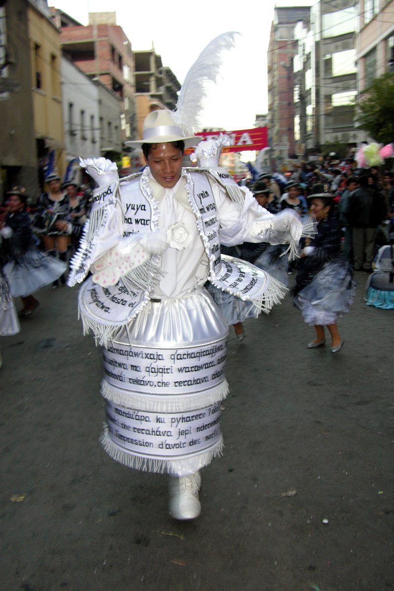 Moreno, tel une tour de Babel, costume emblématique de la fête de La Paz.