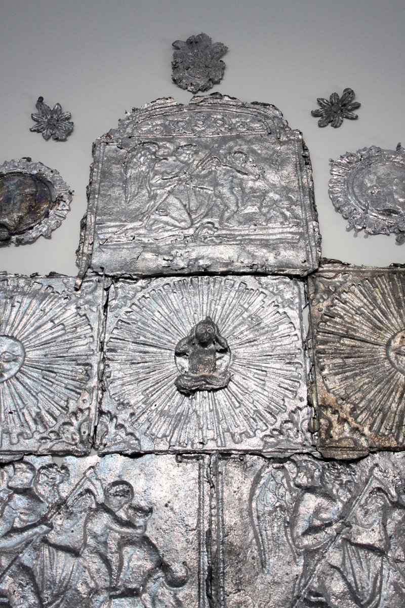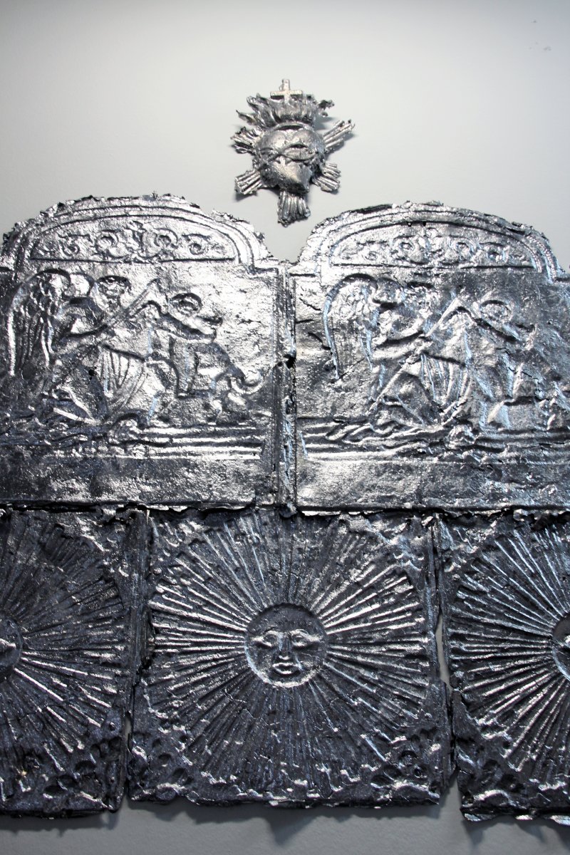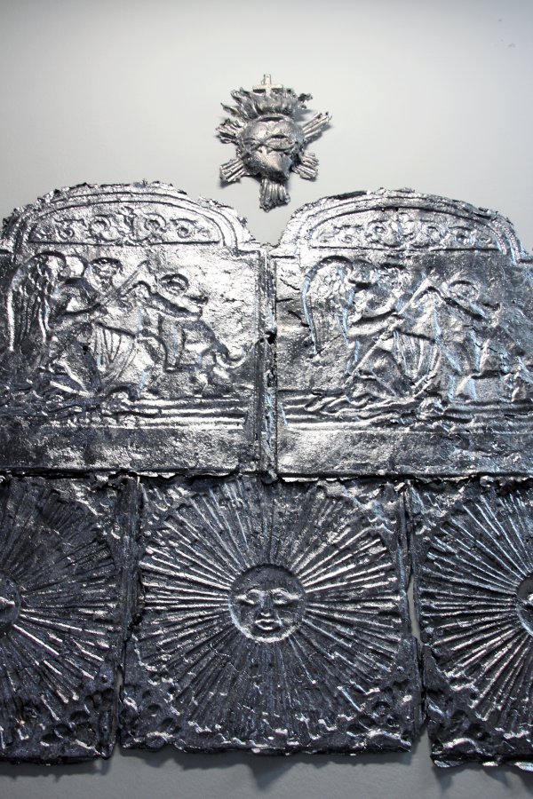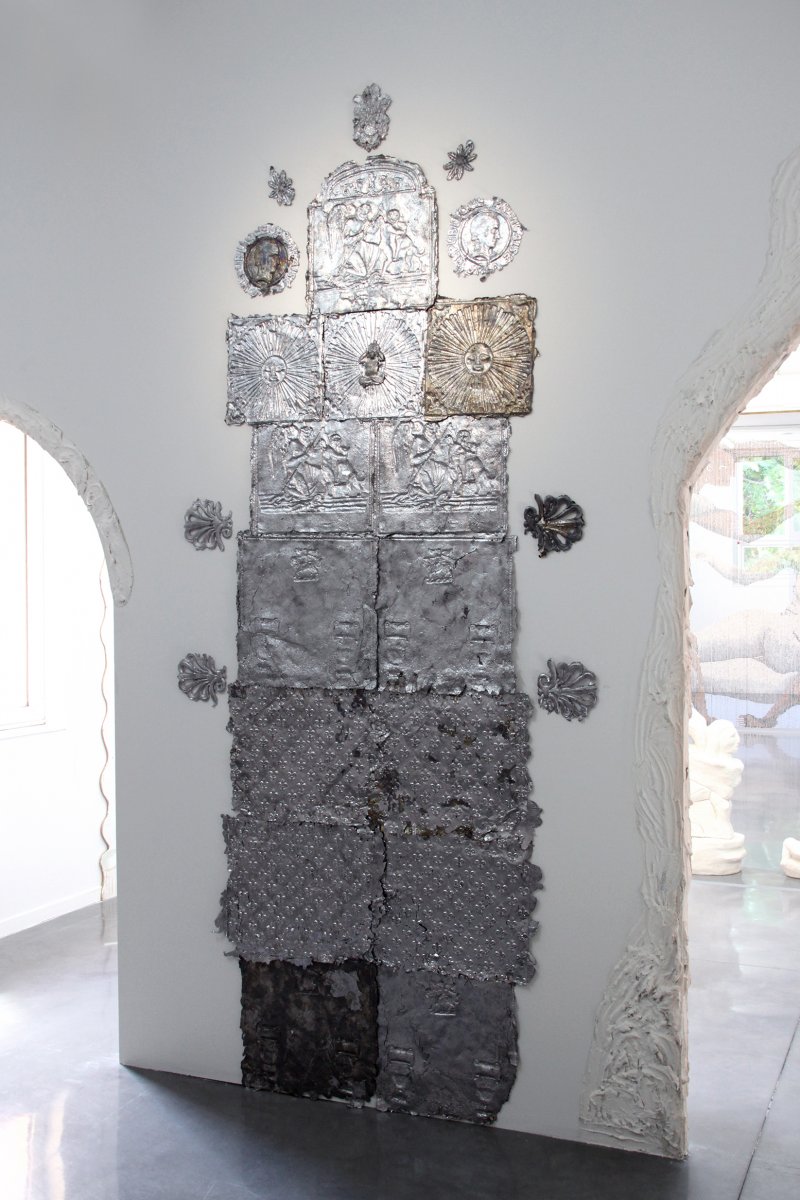 Son esthétique médiévale est augmentée par l’utilisation du plomb, matériau alchimique, imprévisible et riche d’imperfections à la fois. À l’instar des artistes de Pattern and Decoration, il part retrouver dans les cultures extra-occidentales (sénégalaises, japonaises…) des racines spirituelles qui lui permettent de visuellement transcender la rationalité occidentale.