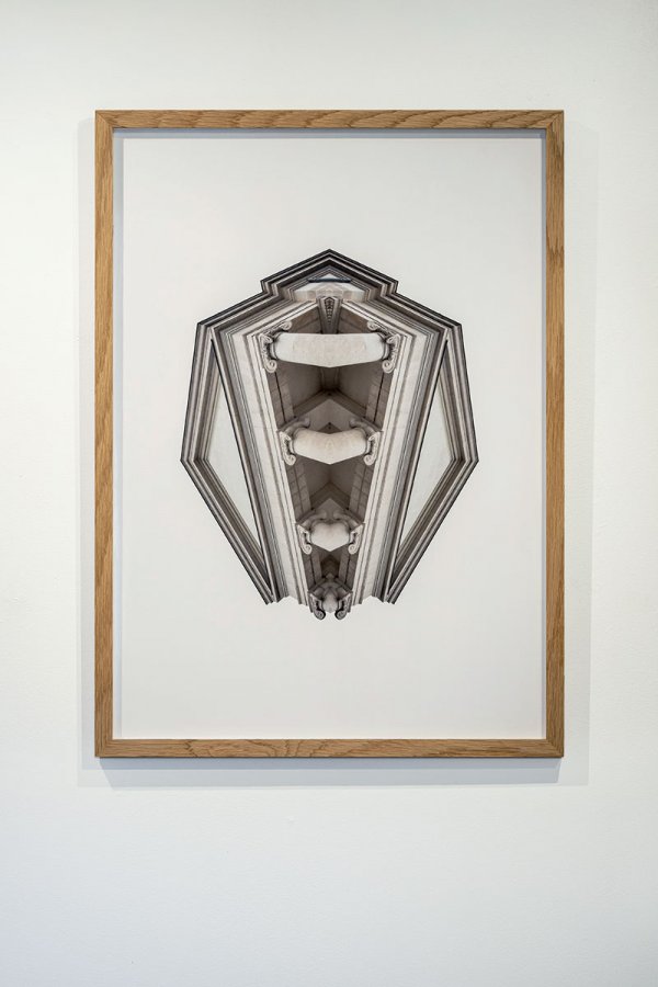 Photographie et montage numérique, impression jet d’encre sur papier photo argentique lustré, cadre en chêne et verre avec réhausse – Dimensions : L. 72 x l. 52 x p.2 cm – Modelage, assemblage par collage,