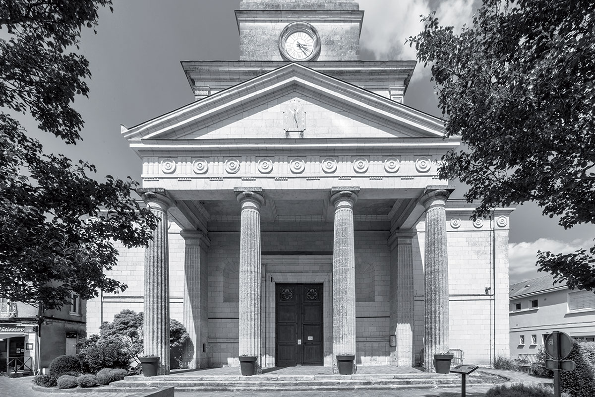 H.D : Oui, à partir de ces relevés faits lors de mes déambulations, j’ai réalisé deux binômes de sculptures qui fonctionnent de manière semblable. Leur format intermédiaire peut faire penser à des maquettes d’architecture aux volumes géométriques assez simples, qui tendent volontairement vers une forme d’abstraction. Un premier binôme de sculptures a été conçu à partir de deux maisons de Saint-Mathurin- sur-Loire qui font face à la Loire. Entre elles, se trouve un interstice assez mince. Cette trouée minime ouvre sur le vaste paysage situé à l’arrière. L’autre binôme s’est constitué à partir de l’image d’une entrée de lotissement situé près de l’Authion (deux garages en symétrie reliant des maisons différentes). Je souhaitais créer deux ensembles d’oeuvres : une plus marquée par le fleuve, l’autre par la rivière. Étant donné que la commune nouvelle s’appelle Loire-Authion, il me semblait que cela permettait d’évoquer l’identité de ce territoire, de cette géographie si particulière marquée par la présence de l’eau. J’ai créé deux ensembles qui font symboliquement penser à des temples. Les piliers que j’ai réalisés ainsi que les bases cubiques des colonnes reprennent les grandes lignes formelles de l’architecture des églises néoclassiques de ce territoire.
