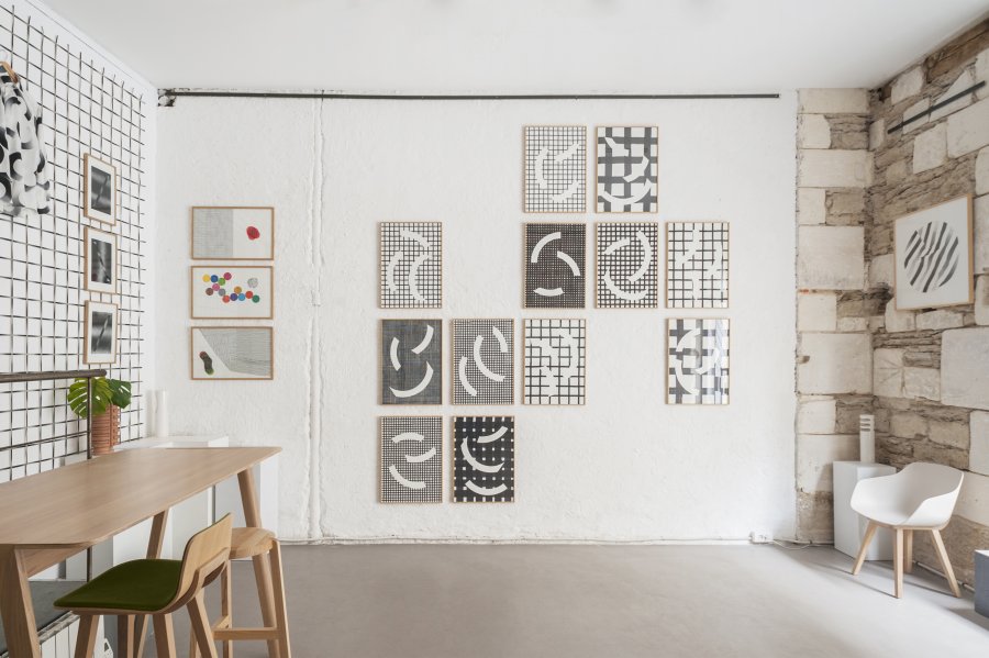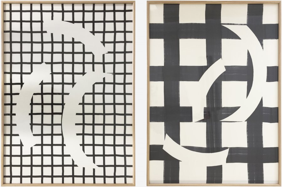 Dans le même temps les formes de Partitions ont servi à l’écriture d’un papier peint Harlequin Tanz, et elles ont aussi été imprimées sur quatre chemises de soie: The love affair. Cela m’a permis de prolonger cette recherche sur le mouvement. Portée par une personne, le motif n’est plus statique. Activé, il se déforme et génère d’autres possibles…