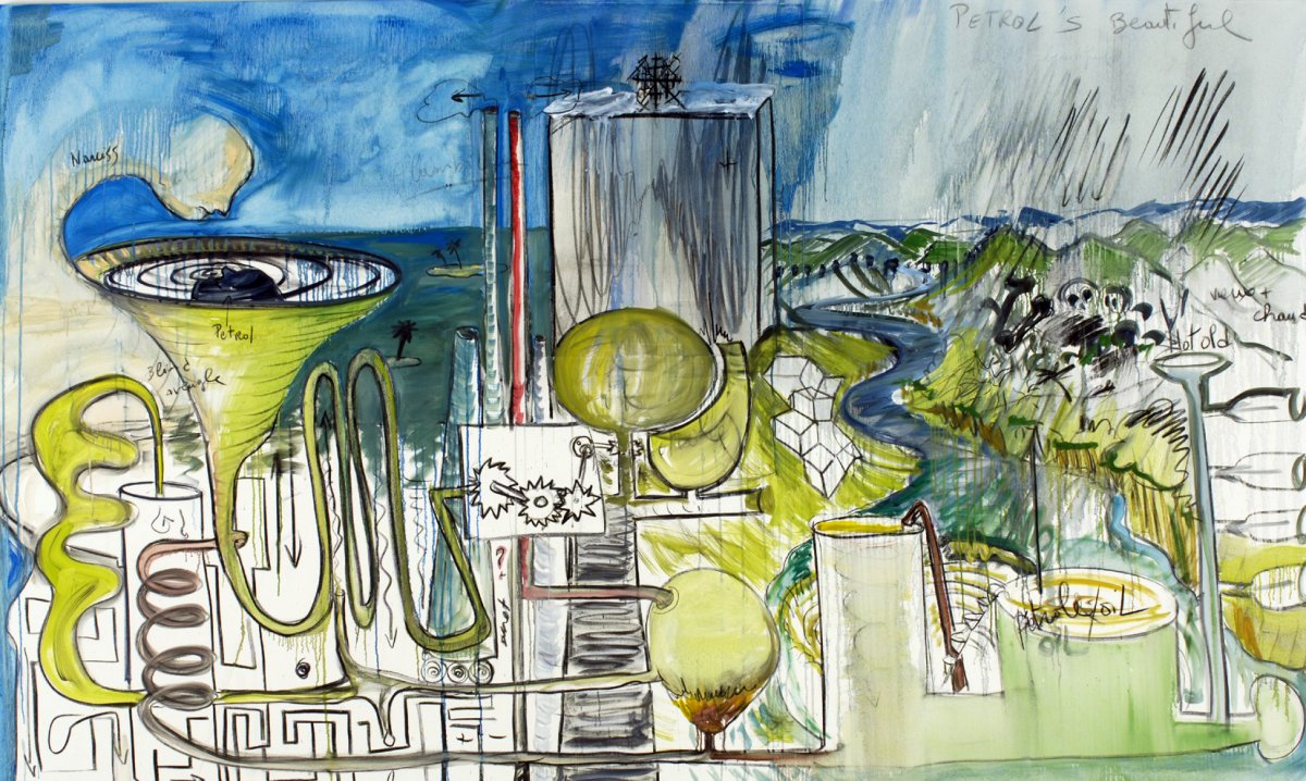 Mais le thème du pétrole, qui se réfère sans doute à une situation géopolitique alarmante, ne donne pas lieu à des complaintes lyriques et fatalistes. C’est l’ambivalence de cette matière lourde et sombre, bénéfique et dangereuse, qui est traitée. La couleur est présente, et la nature ne s’avoue pas encore vaincue. Les feuilles de papier collées sur la toile, parfois dissimulées par la peinture, rappellent l’expression première de l’idée de l’artiste: aussi grandes et achevées qu’elles soient, les toiles restent empreintes de l’instantané de la création.