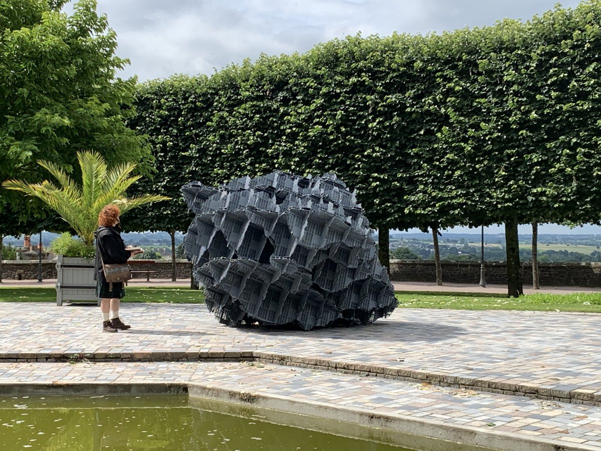 Cette année les trois artistes retenus : Vincent Barré, Philippe Desloubières et Vincent Mauger, artistes reconnus dans le monde de l’art contemporain de par leurs nombreuses expositions dans des Musées ou des évènements internationaux, proposent ici dans ce jardin public de Fougères, trois propositions de recherches diverses qui extériorisent leur univers intérieur au moyen de formes, de matériaux particuliers. Demander à ces artistes de présenter ainsi par leurs sculptures, objets inanimés par excellence, leur monde et univers intérieur, voici ce que « Place aux Arts » propose à voir aux visiteurs qui, au sortir du château ou des espaces historiques de la ville ancienne, se trouvent ainsi en relation avec diverses formes d’expression artistique d’aujourd’hui.
