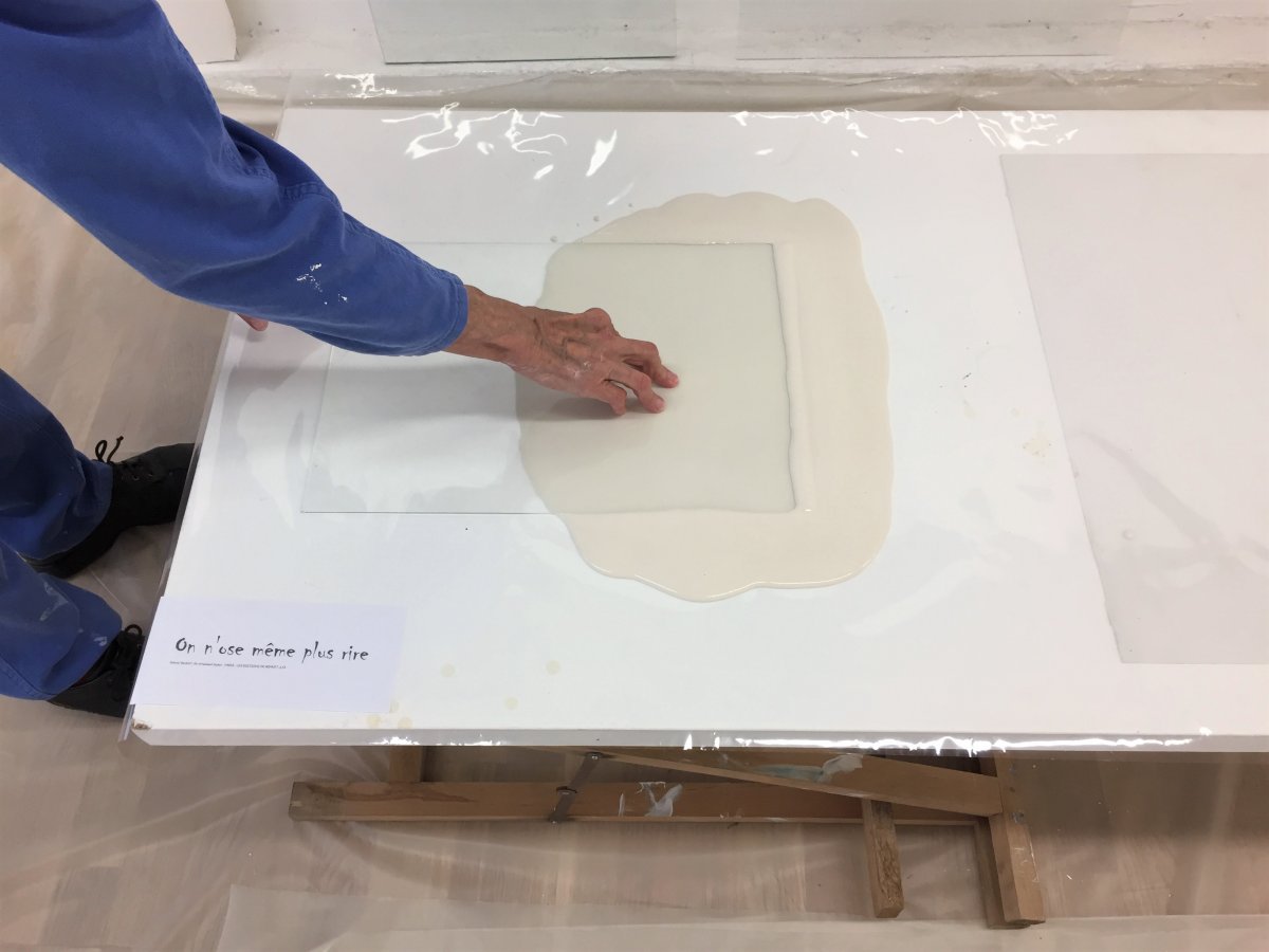 La beauté, la fragilité. Fabriquer des objets réflexifs. Quand j’utilise le plâtre et le verre pour les joindre ; ils se séparent aussitôt après l’évaporation de l’eau, à croire que n’ayant plus soif, le plâtre se décolle de la vitre lui redonnant toute sa transparence lui ayant pris sa forme, mais pas sa résistance… devenu intransportable, et se brisant entre le pouce et l’index.