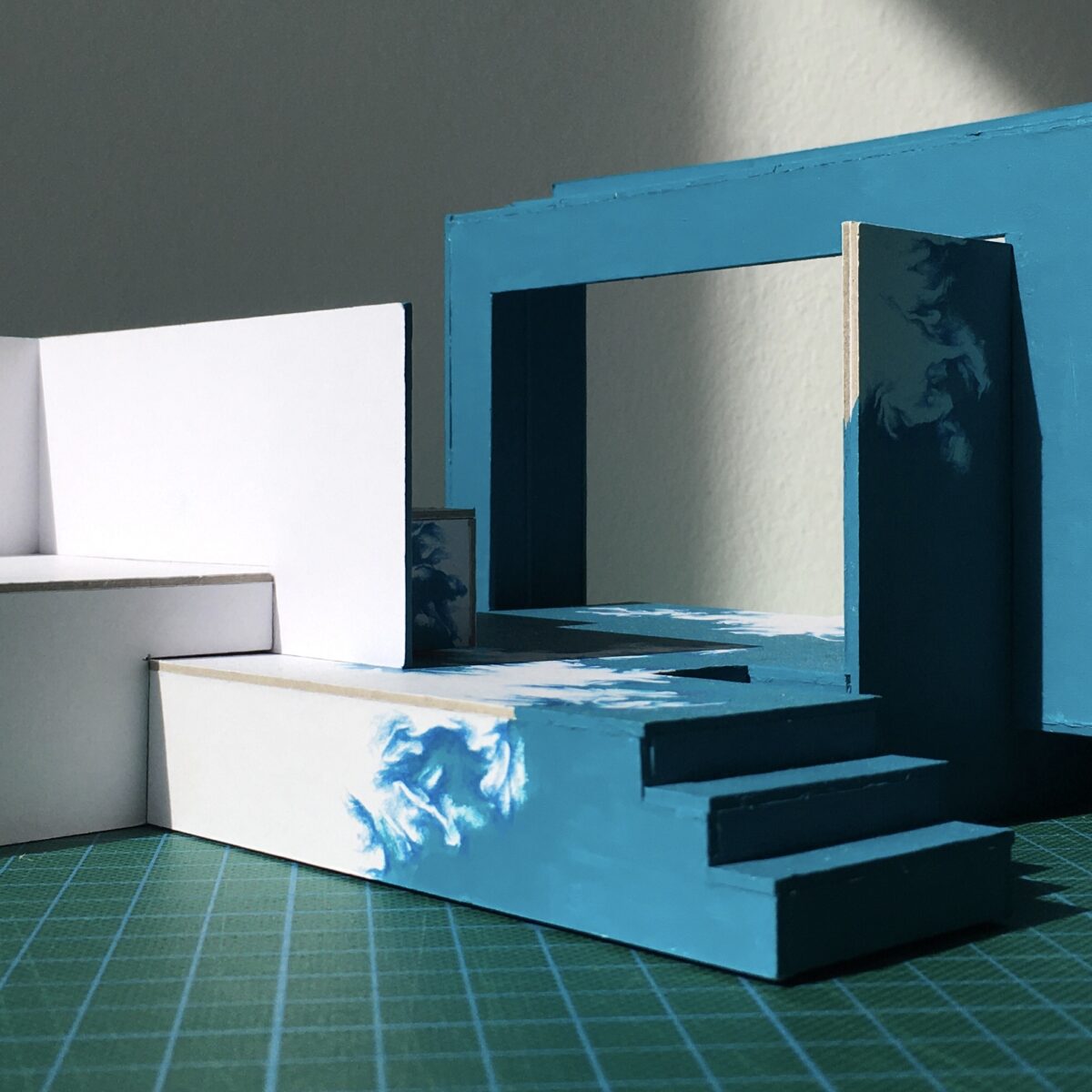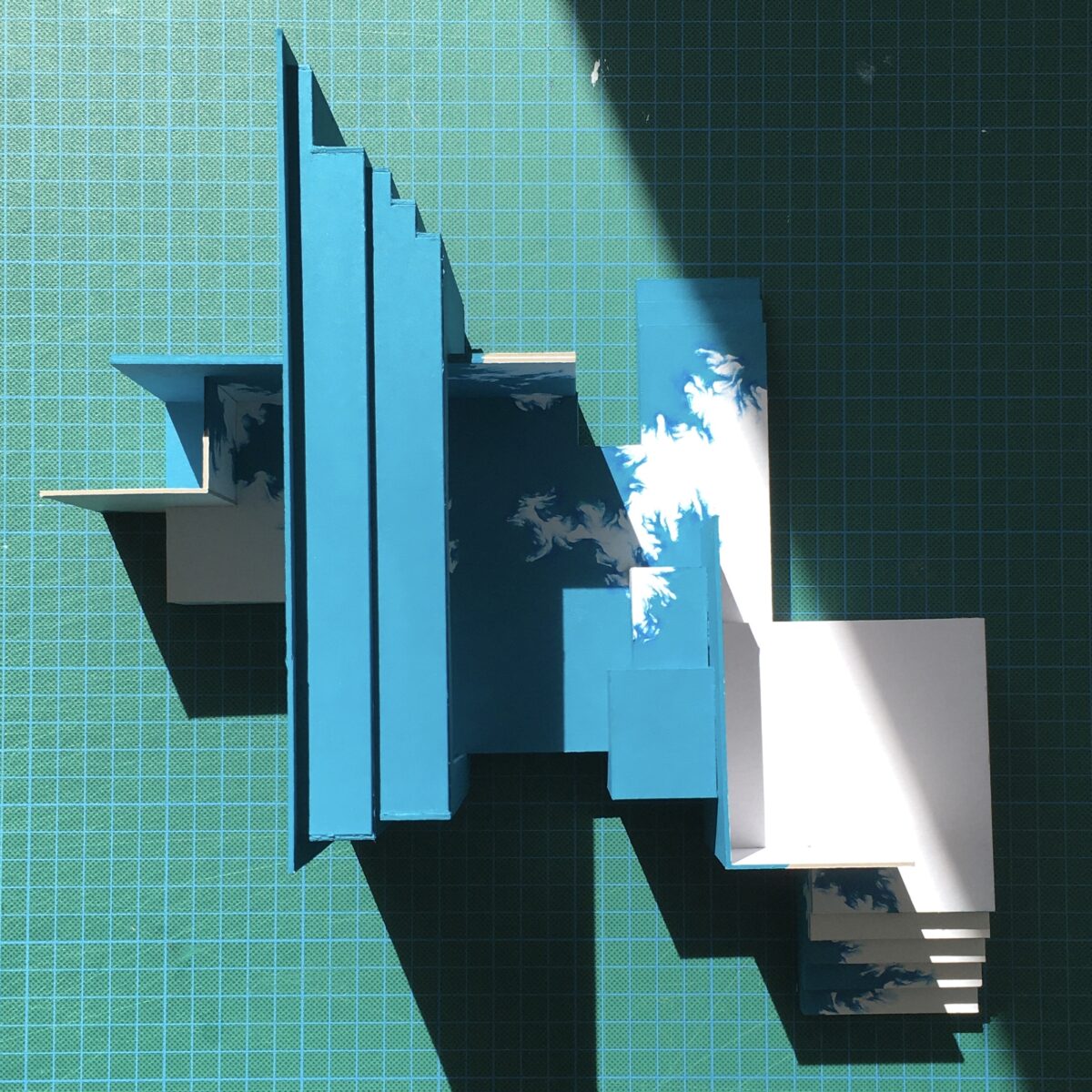 Guillaume Jezy, «Plongée libre dans un bassin percé», 2024, carton, acrylique, crayon de couleur