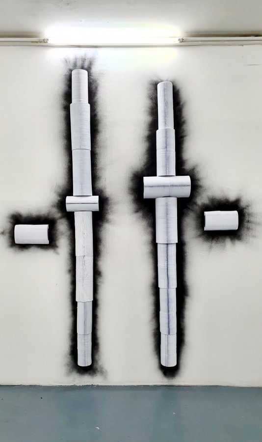 Dès lors, la palissade de chantier ne clôture plus la zone de travaux, les socles ne soutiennent plus la palissade et le poteau de signalisation n’a plus rien à signaler. Les pièces sont désormais silencieuses et deviennent la restitution de l’expérience de l’action, un mécanisme documentaire faisant œuvre.