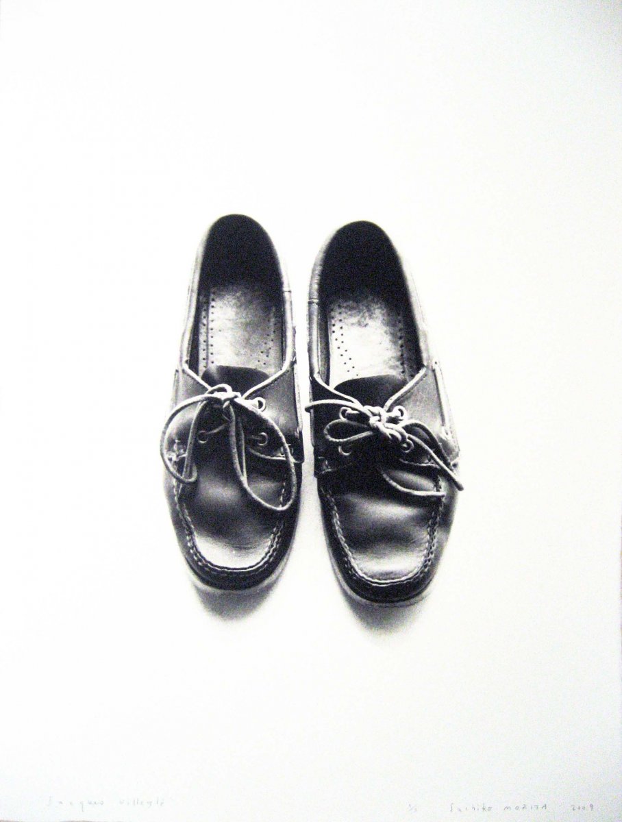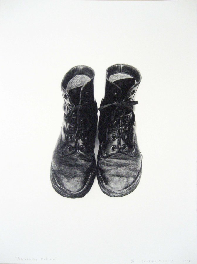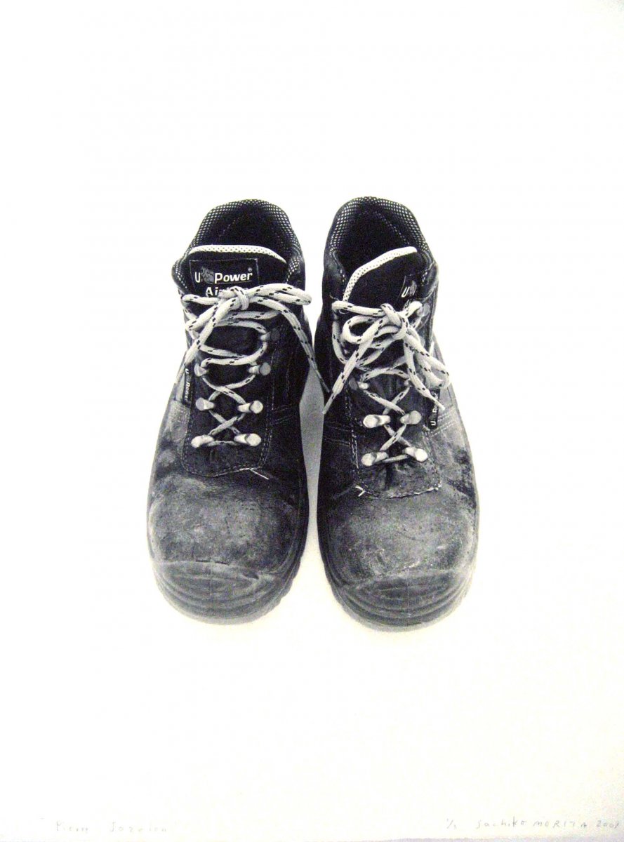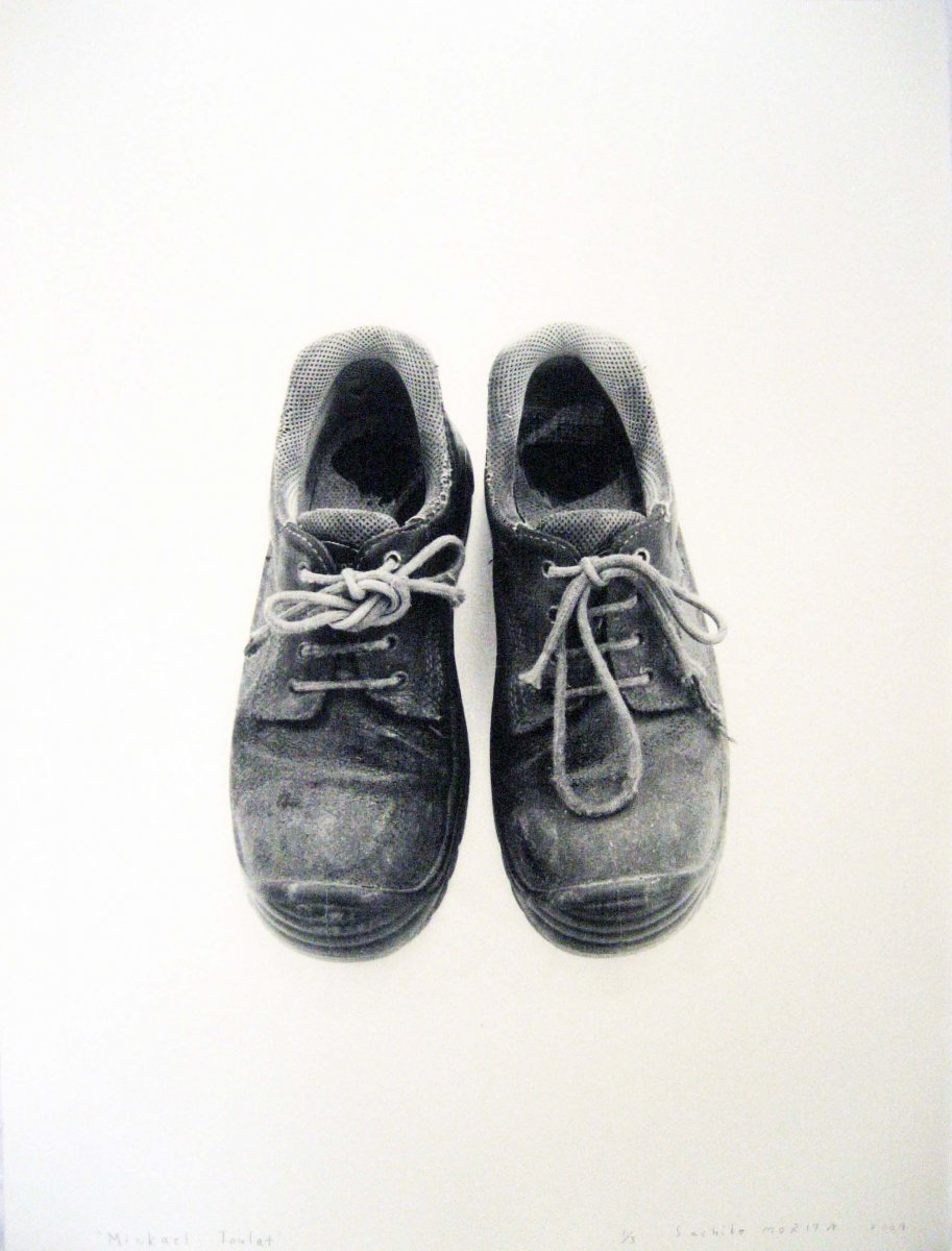 Un jour J’ai photographié une paire de mes chausseures usées, sur cette photographie j’ai trouvé la réalité accumulée que j’ai vecu vraiment.