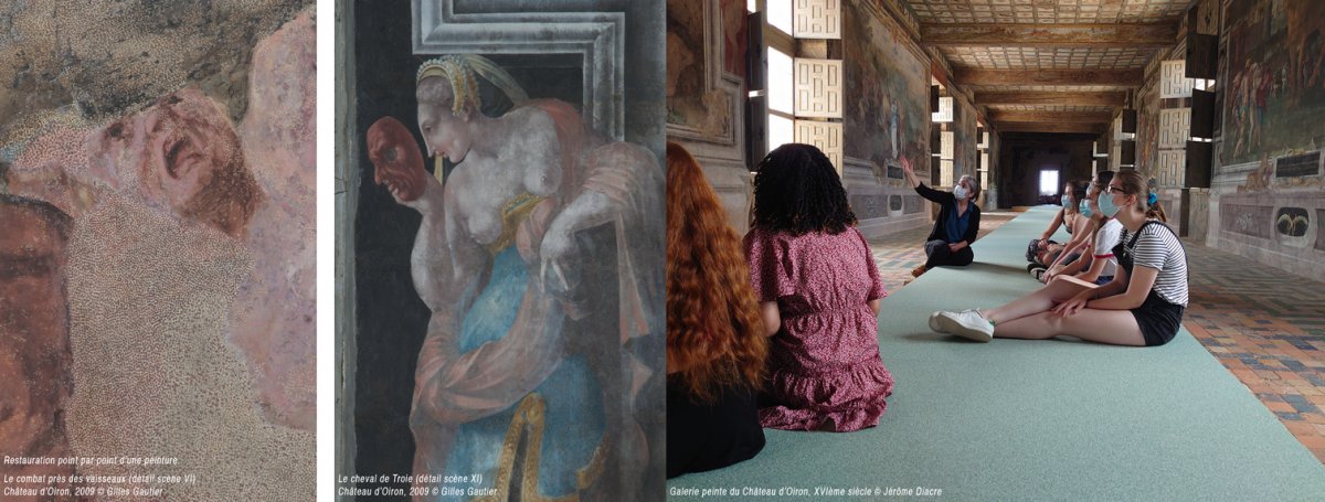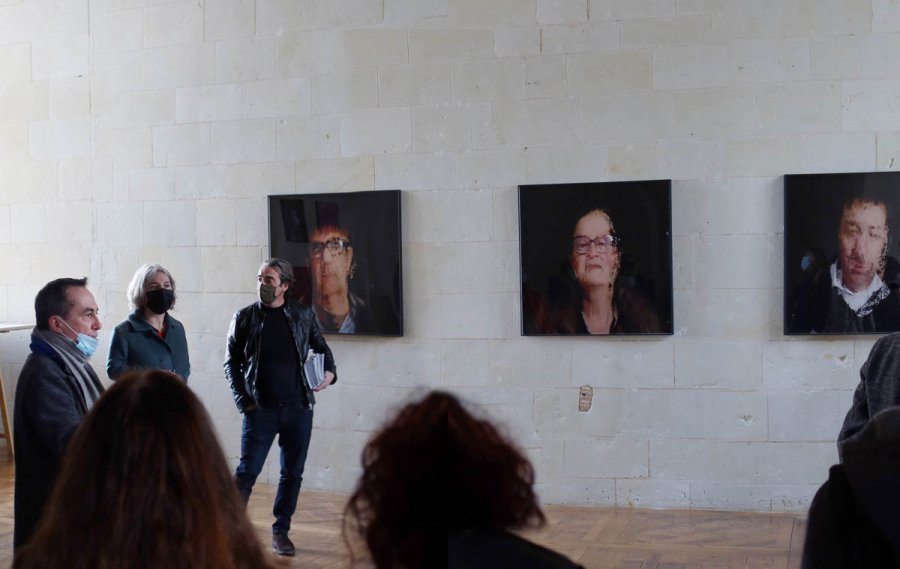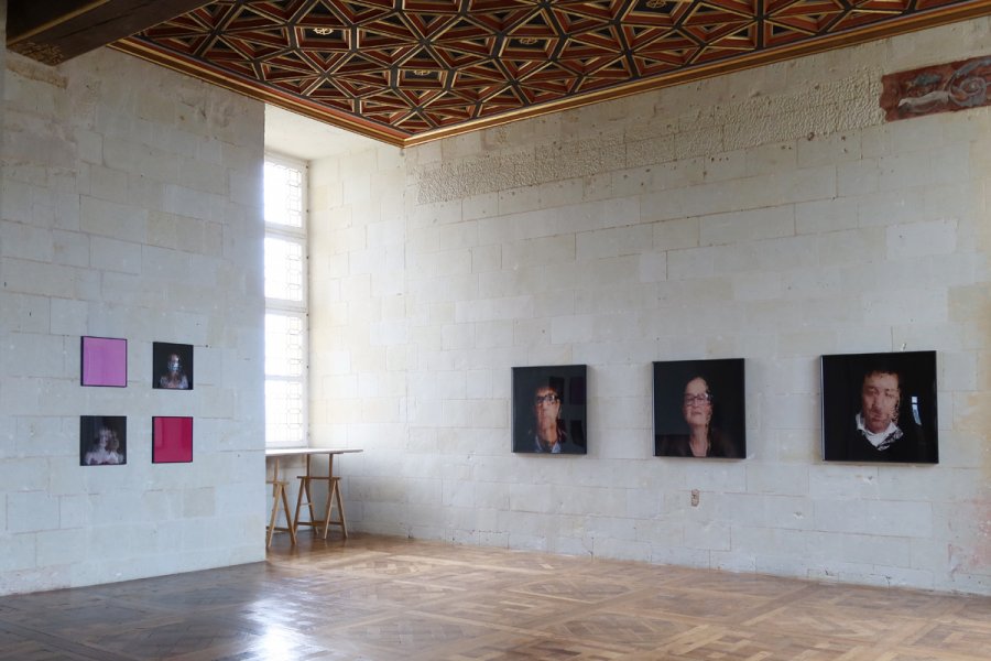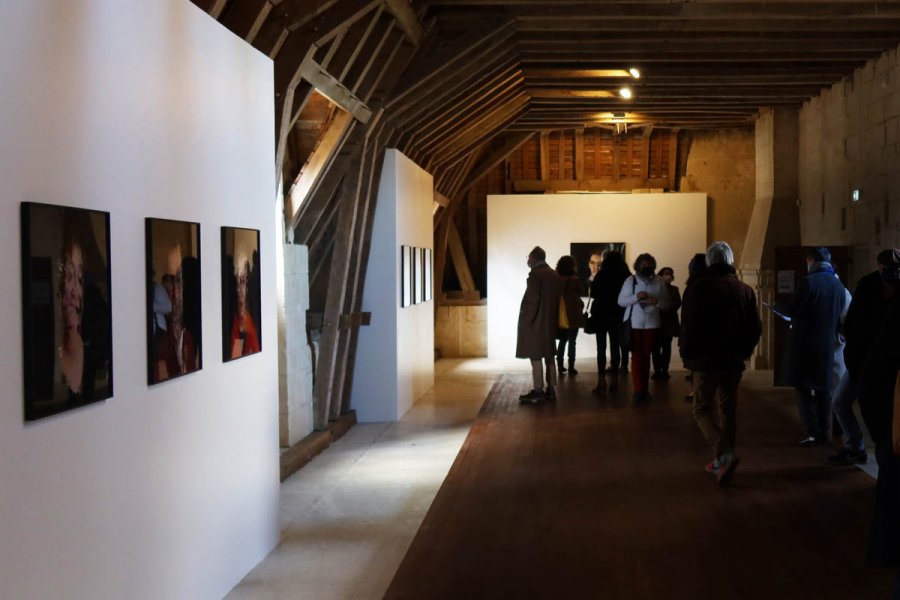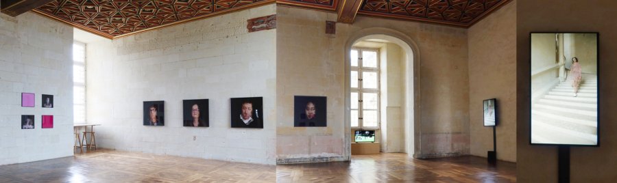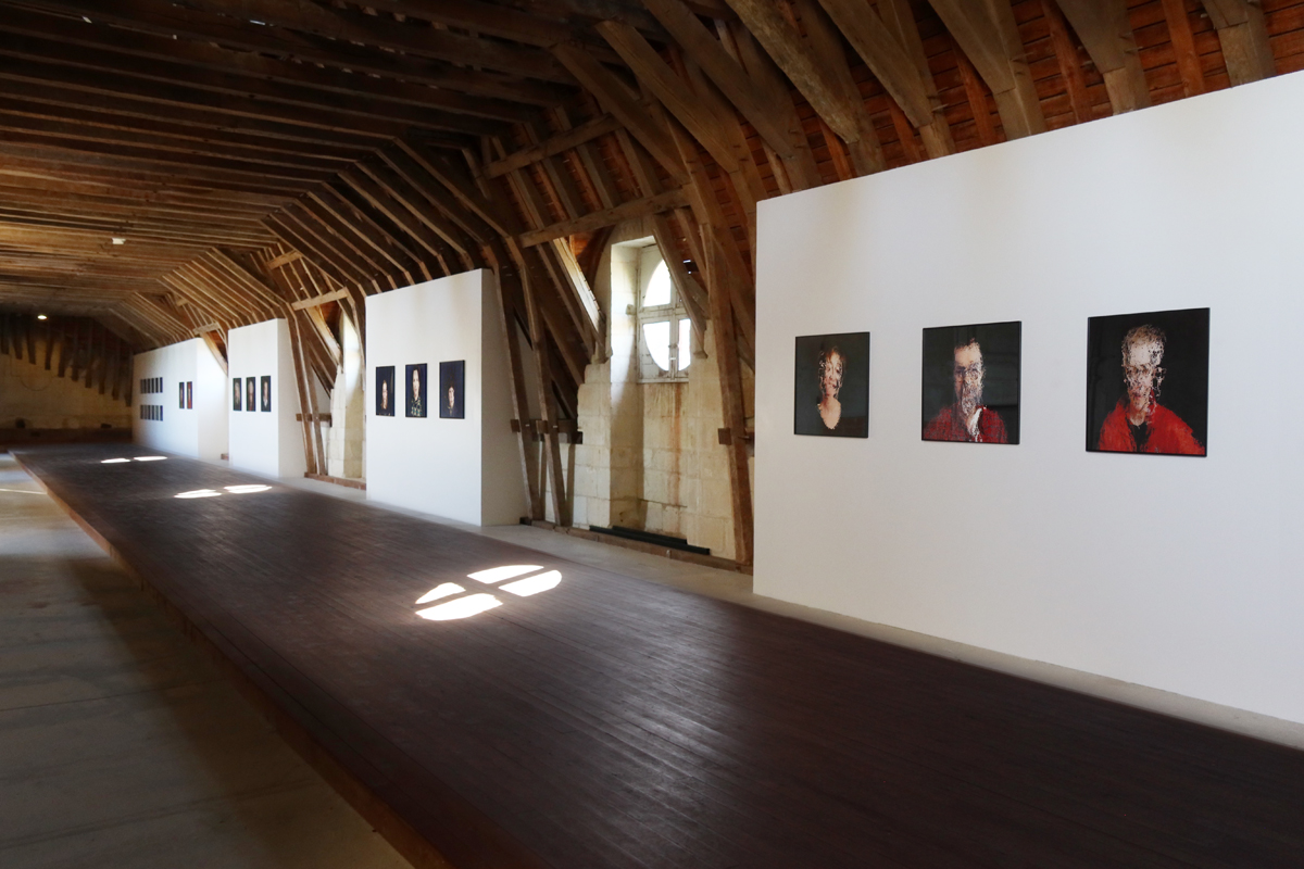 Isabelle Dehay, «Restitution du projet avec les élèves du lycée Jean Moulin de Thouars, Combles Renaissance, exposition Portraits Dpi», 2022, Château d'Oiron, photographie : droits réservés