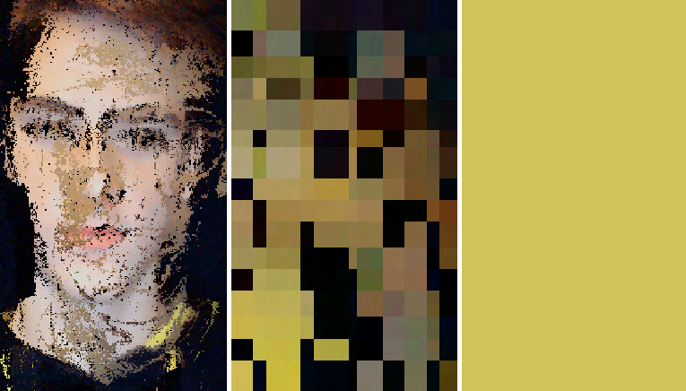 Les Pixselfies sont des portraits réalisées à partir d’informations numériques que je m’applique à trier selon différents protocoles, en écrivant mes propres algorithmes. Images mentales, la série témoigne de l’organisation de l’information sur nos systèmes de représentation, que ce soit sur le corps physique, psychologique ou dans nos mémoires. Les Pixselfies intègrent la série des Pixels Paintings.